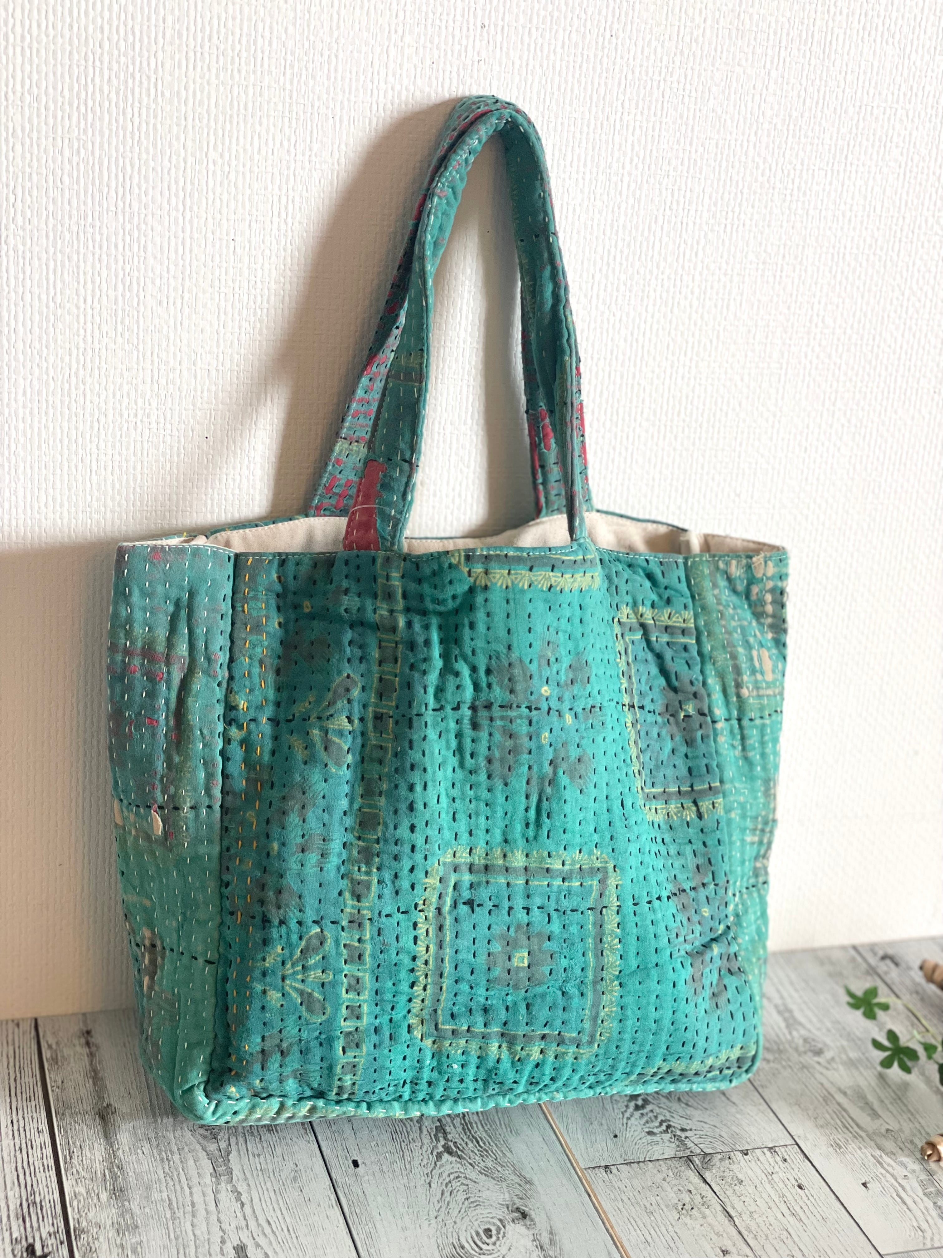 使い古されたサリーやドゥパタを重ねて刺し子を施した伝統的な手仕事です。