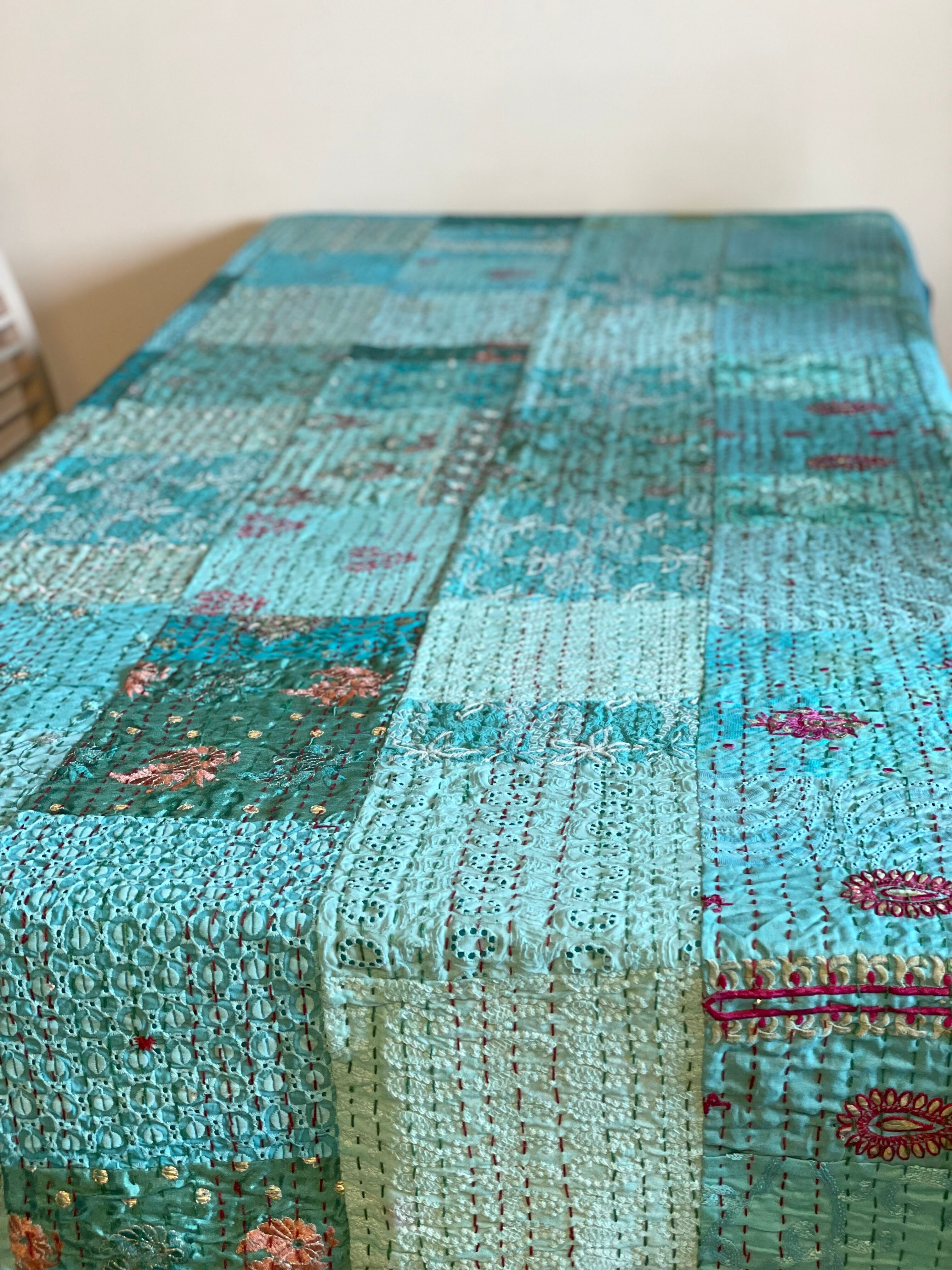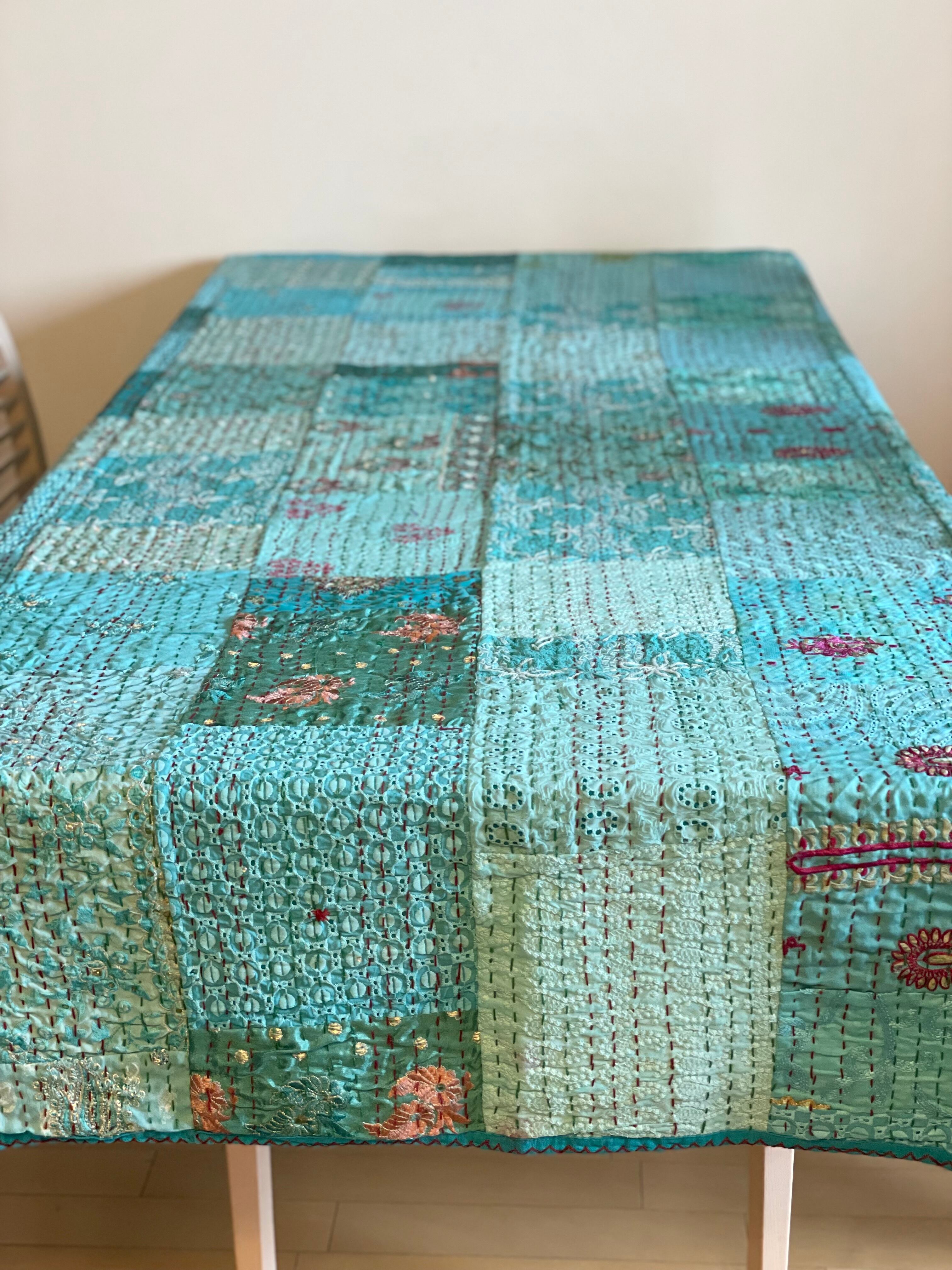 鮮やかなインドの古布のパッチワークマルチクロスです!