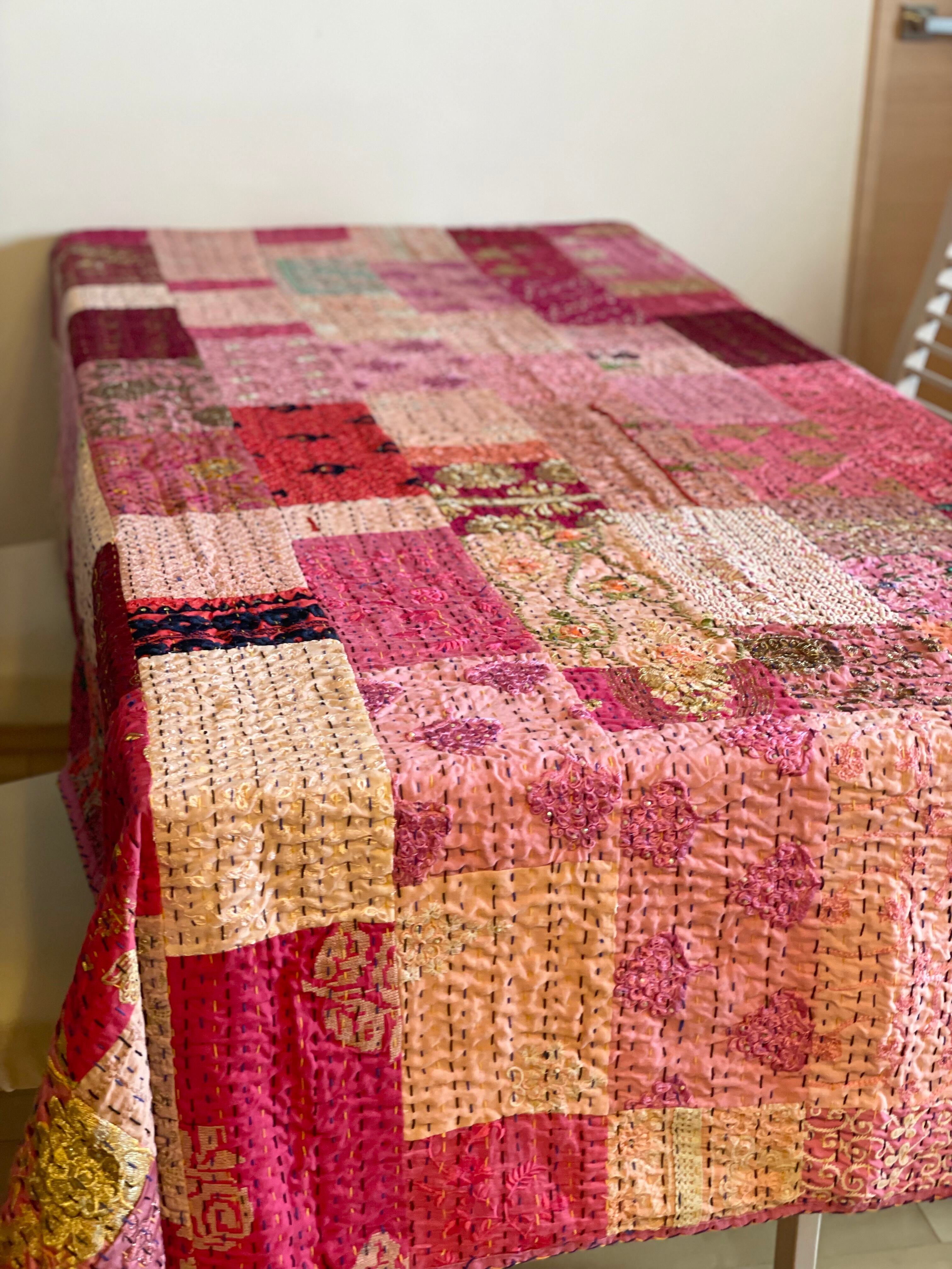 鮮やかなインドの古布のパッチワークマルチクロスです!