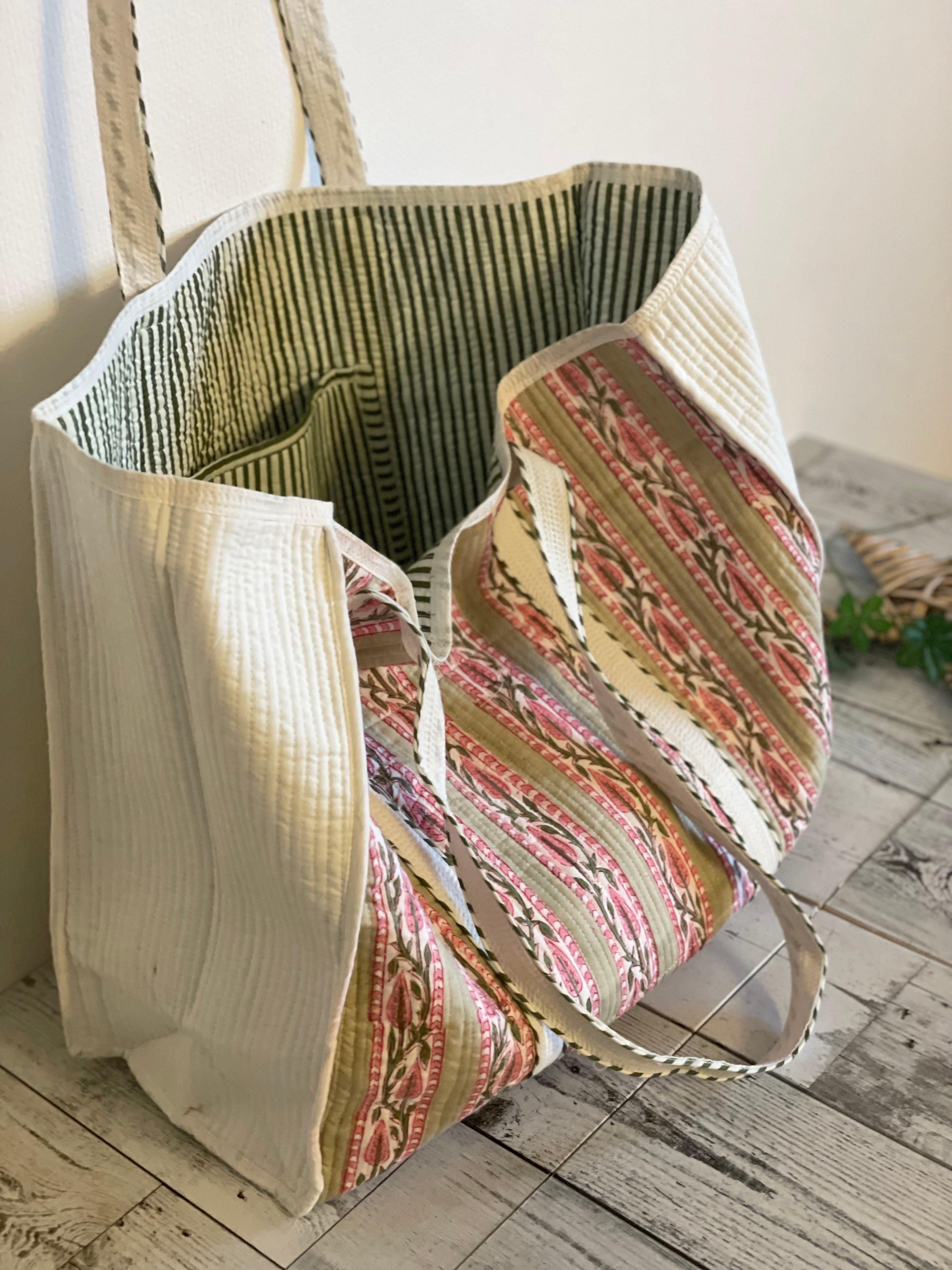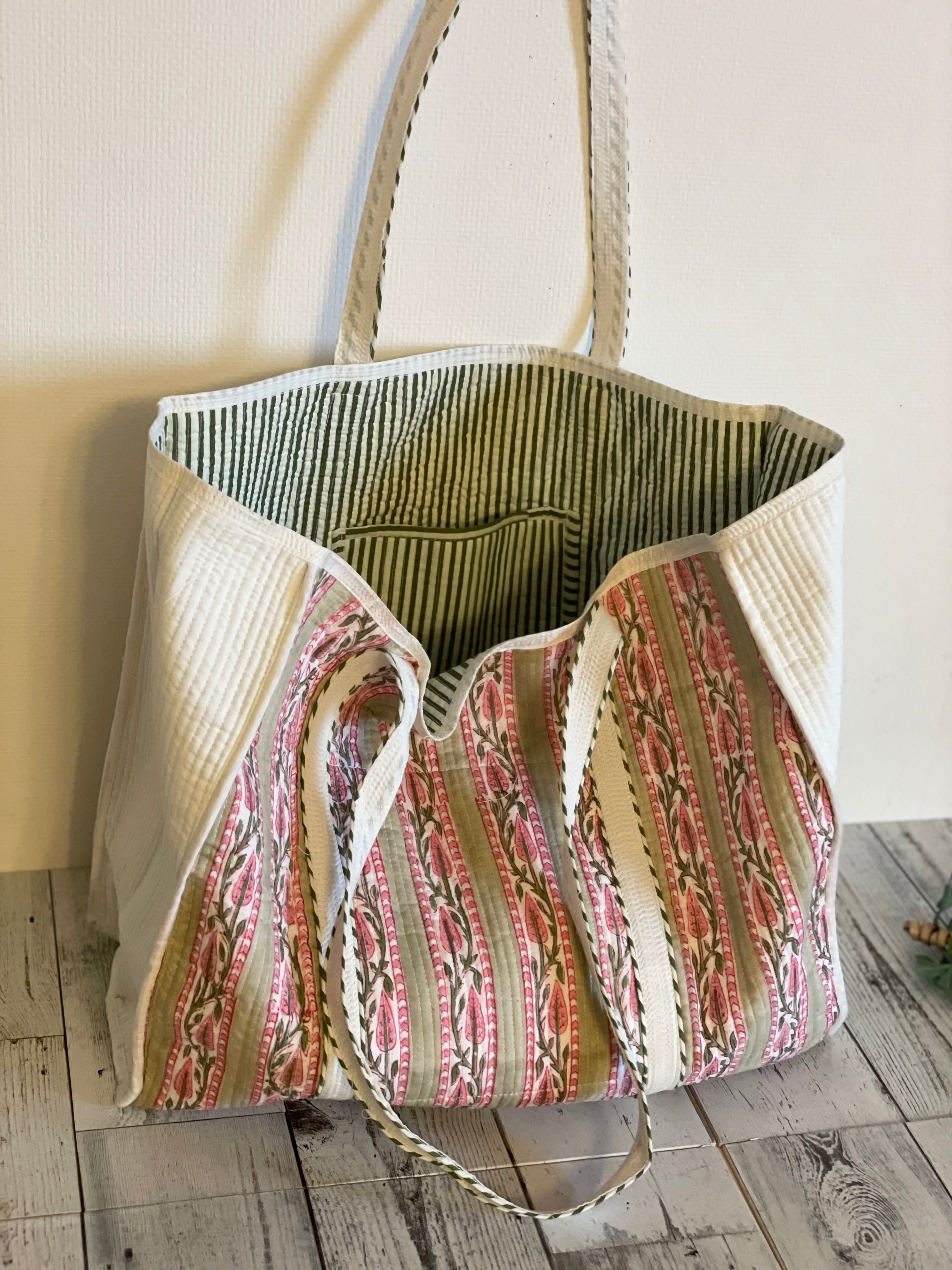 インドブロックプリント・キルティングトートバッグ