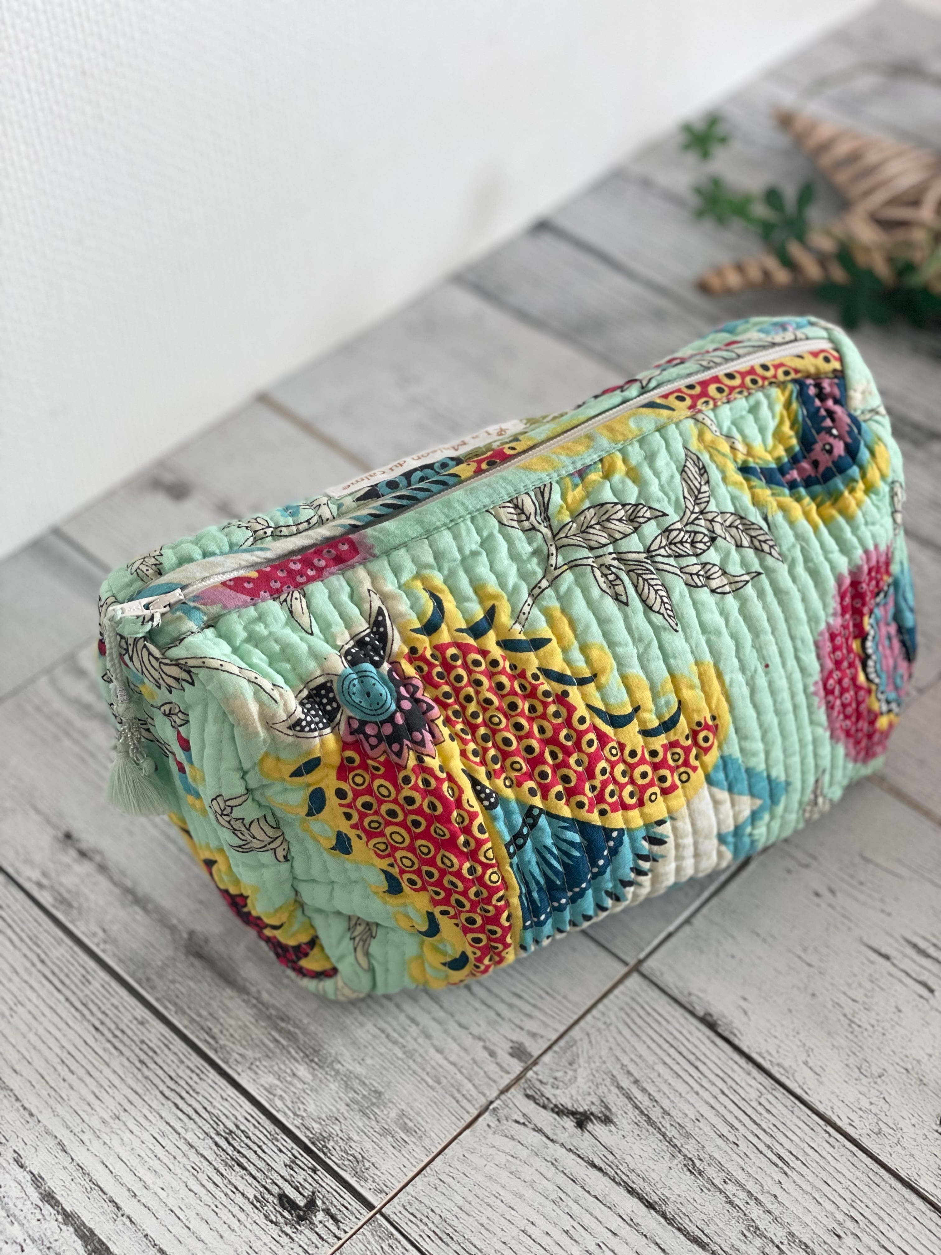 ブロックプリントの大・中・小のポーチ3点セットです。