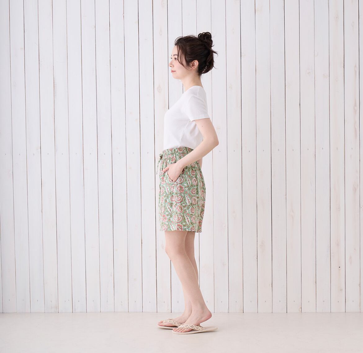 インドの伝統技法で作られた独特の柄が、リラックス感の中にもさりげない個性をプラスします。