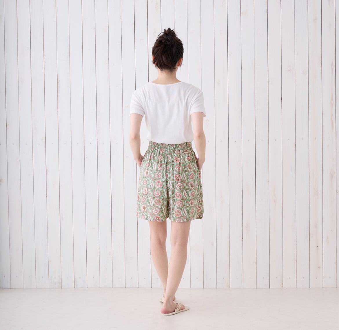 ショートパンツ コンフィーブロックプリント ミントグリーン