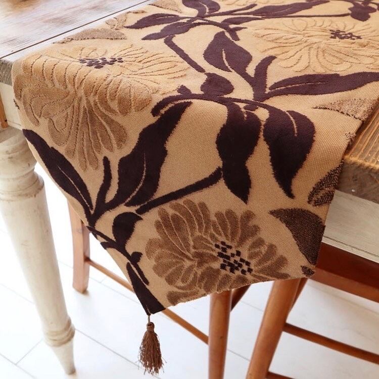 ⌘ブラウン基調に黒(ダークブラウン)の模様が入ったとてもエレガントなテーブルランナーです✨