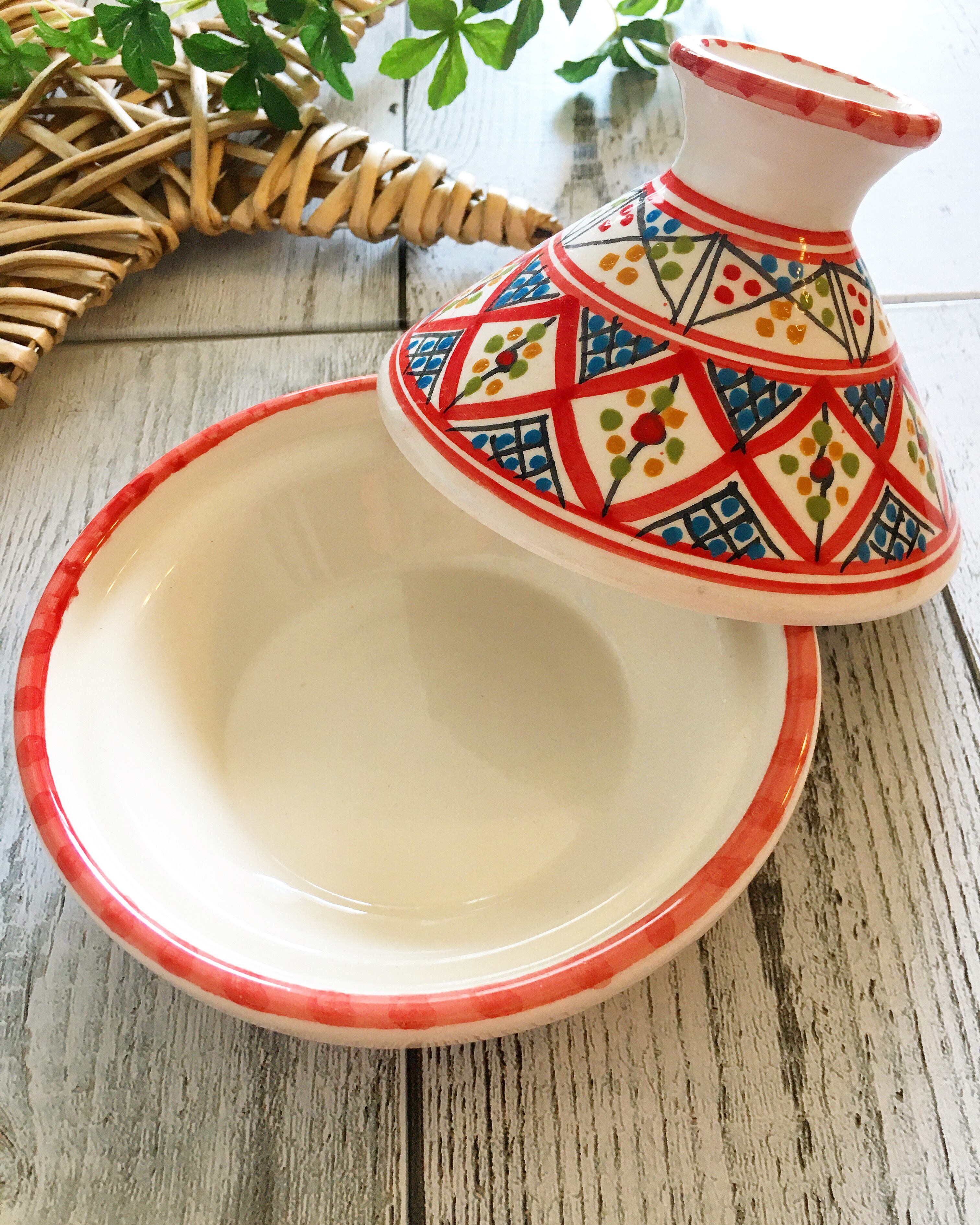 チュニジアSLAMA製の手描きミニタジン皿です。薬味やスパイスを入れても素敵です✨