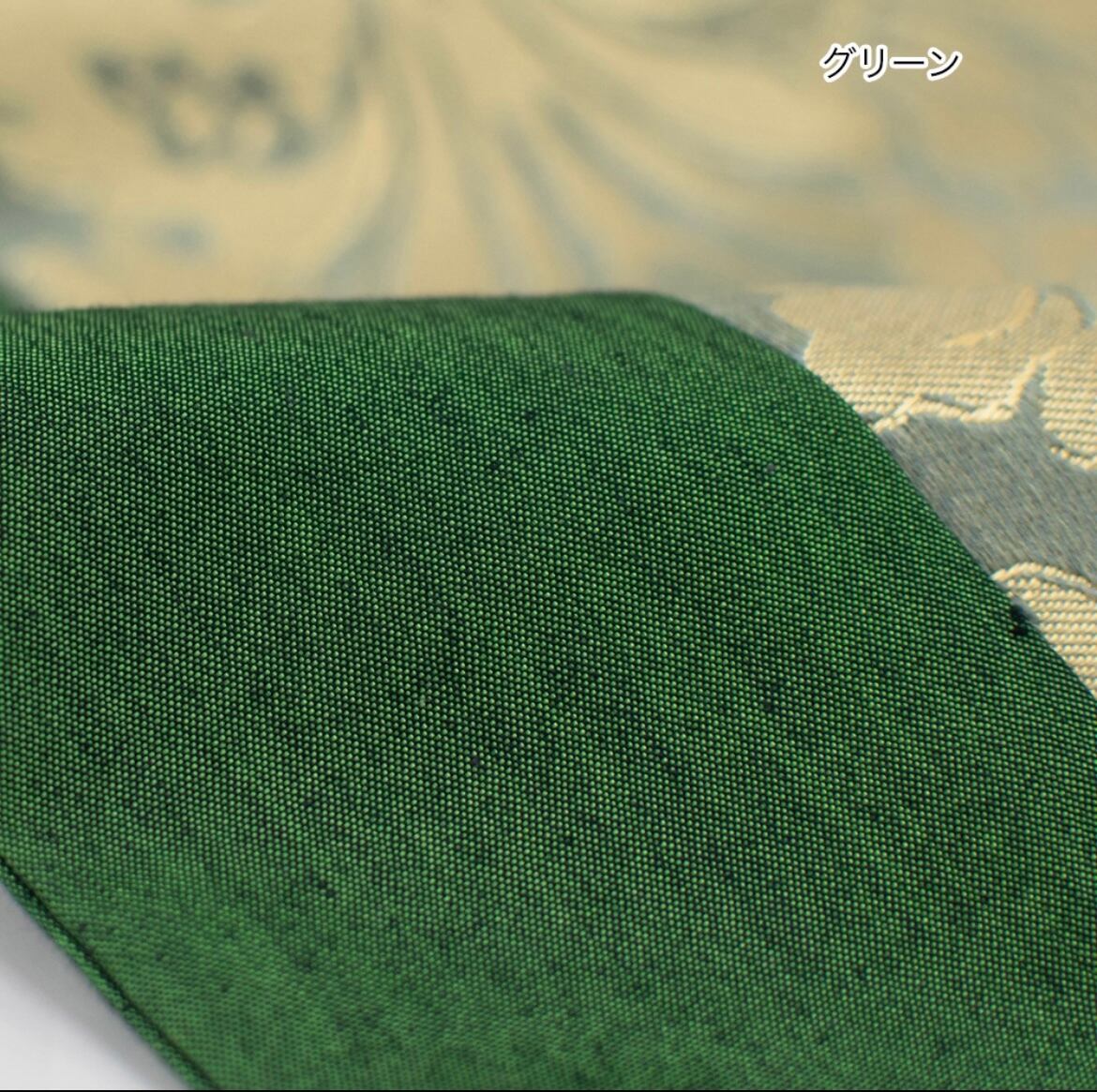 テーブルランナー 光沢フラワー グリーン