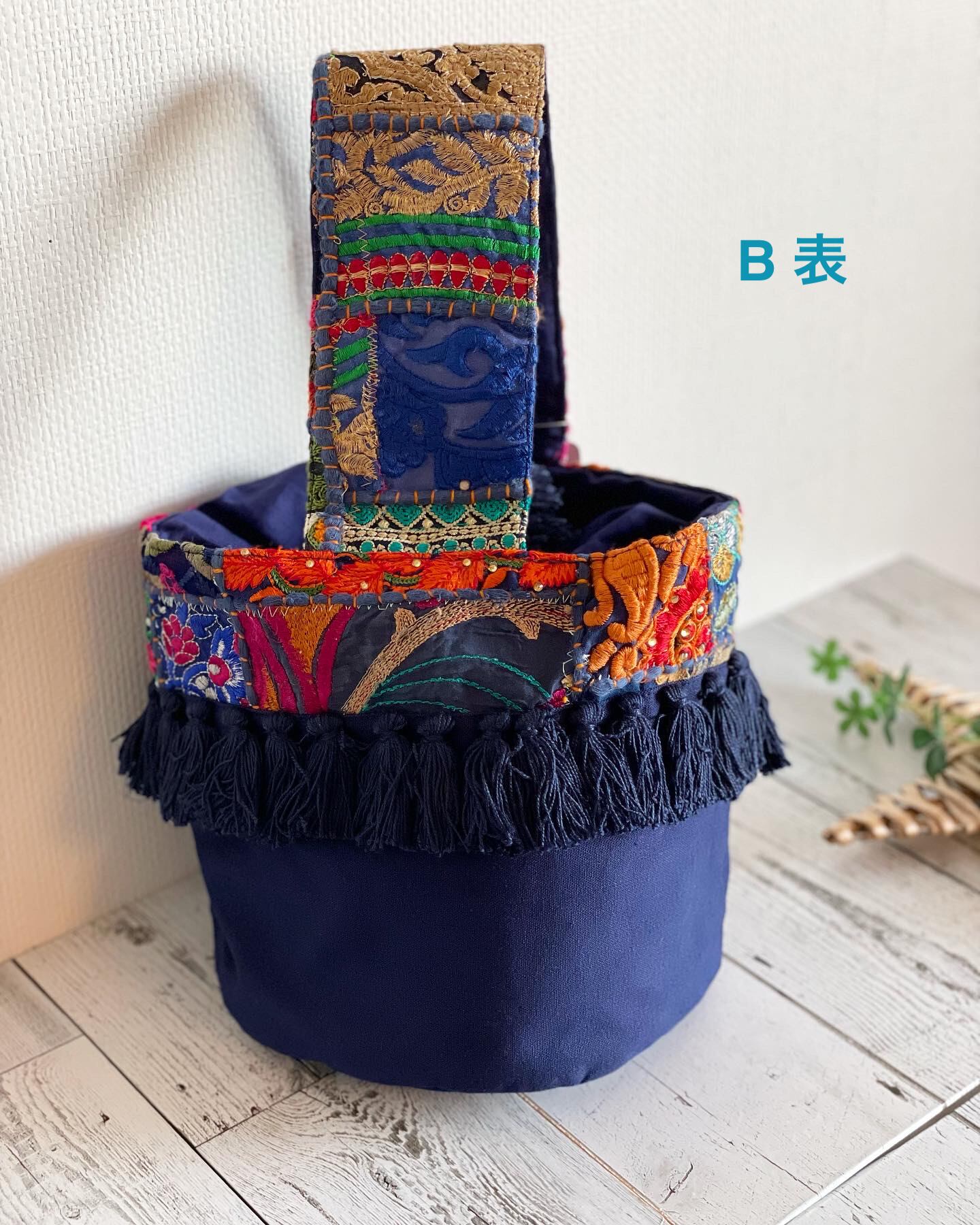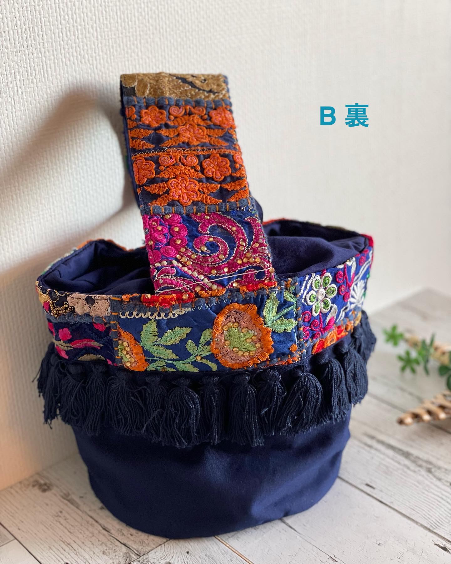インドの古布にフリンジ、装飾が贅沢なシリーズ。オンリーワンの布の組み合わせが楽しい。