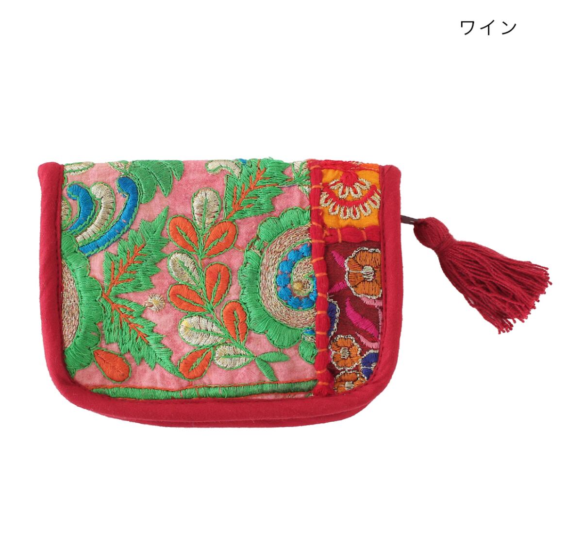 インド刺繍 アクセサリーポーチ ワインレッド