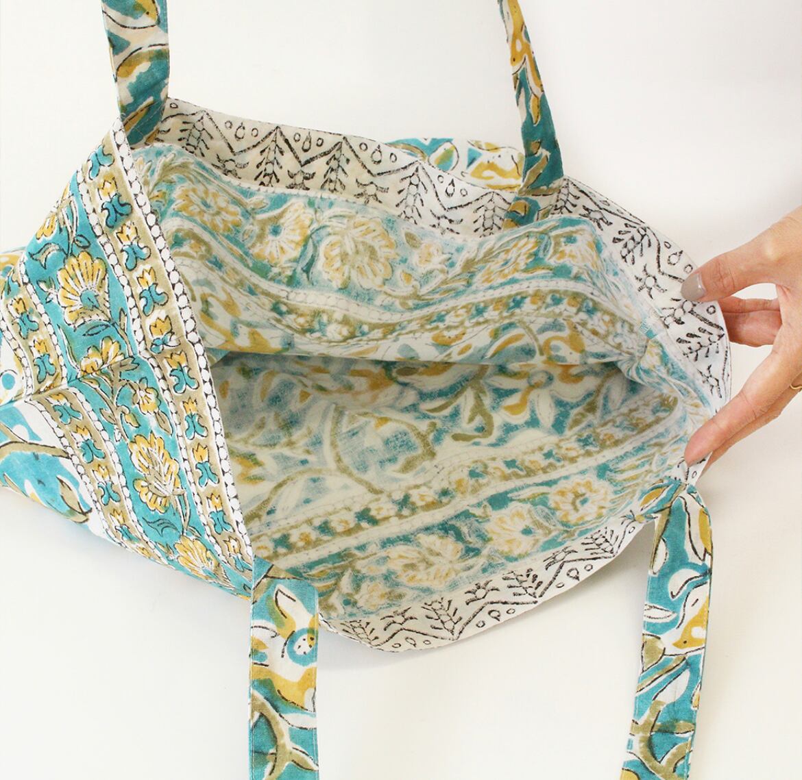ブロックプリント エコポケッタブルバッグ ターコイズ