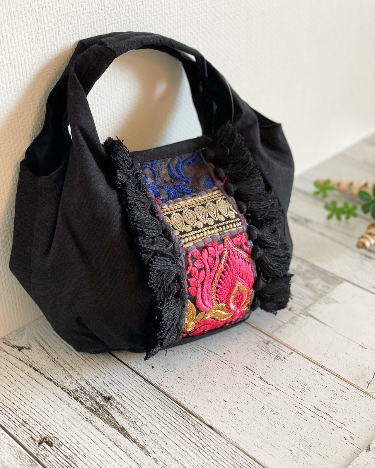 カンバディアパッチワークとタッセルがコーディネートのアクセントに!