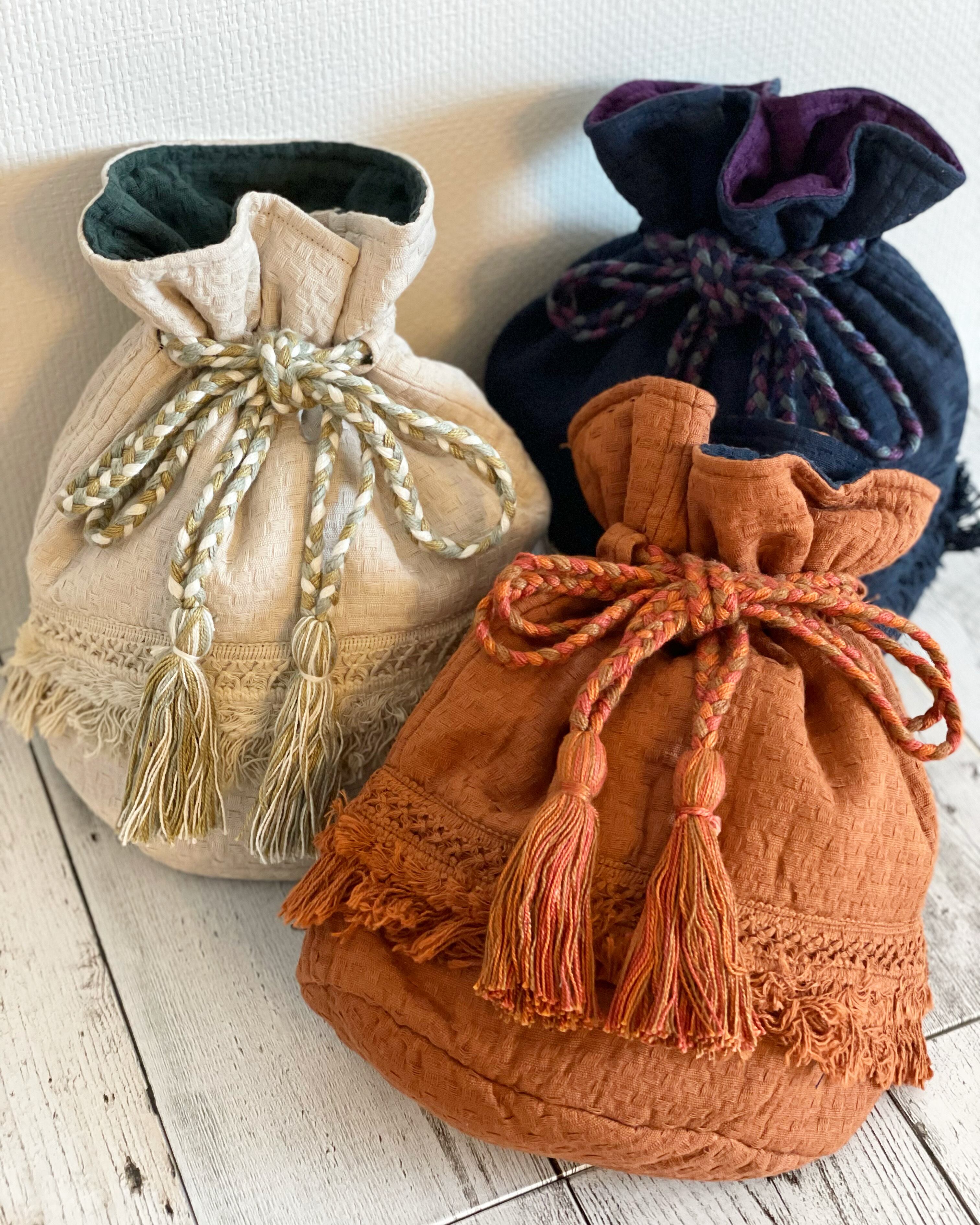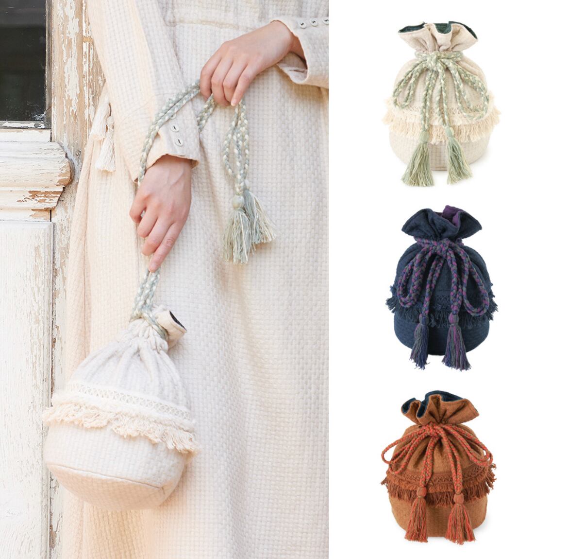 これひとつで出かけられるサイズ感のミニ・巾着バッグです。