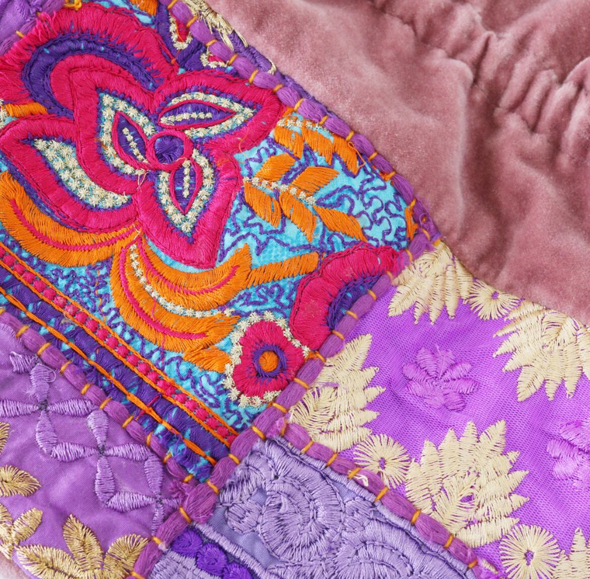インドの民族衣装サリーをはじめとする伝統的な刺繍生地をはぎ合わせて作られています。