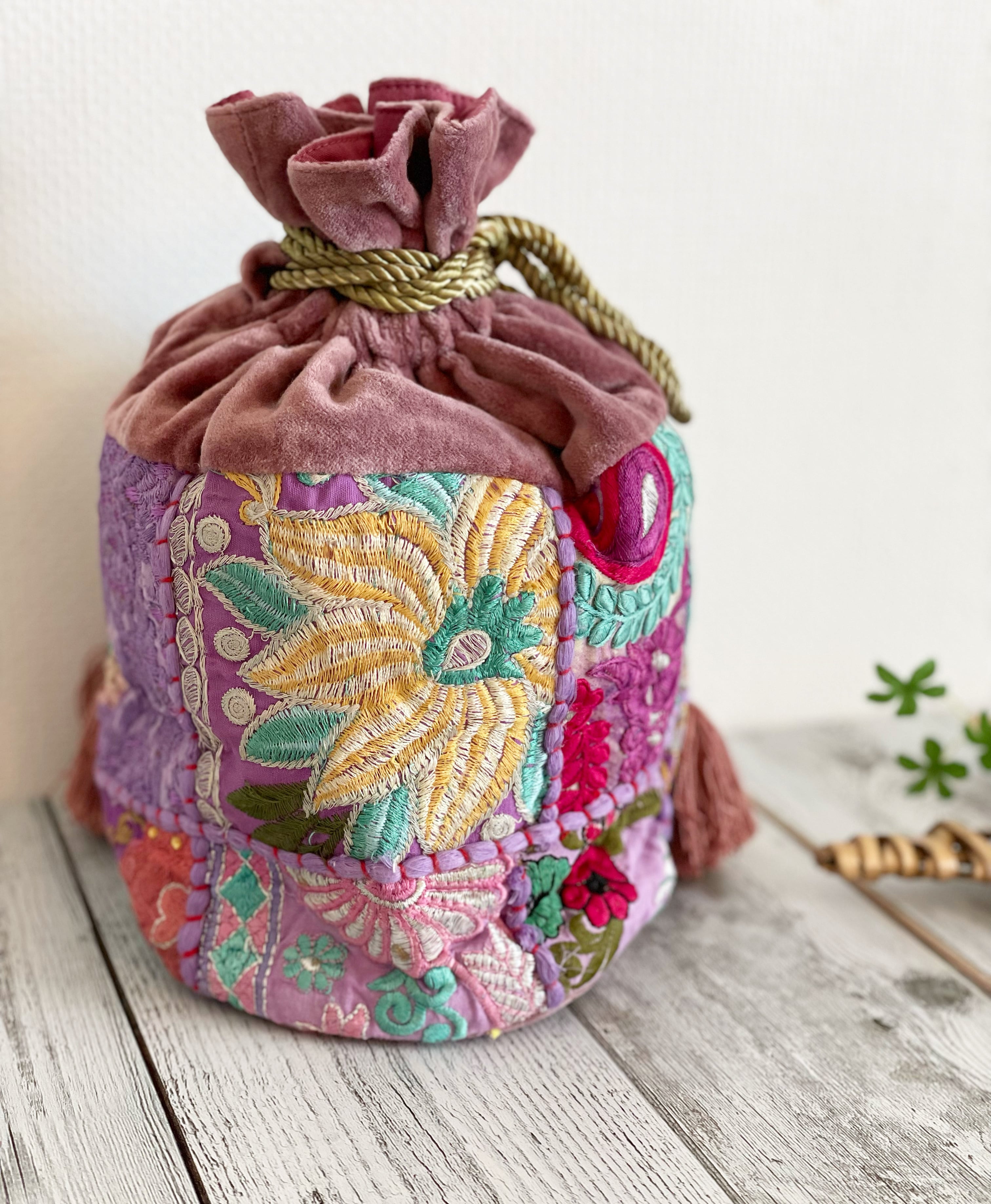 ひとつひとつ異なる刺繍生地とベルベッドとのコンビネーションがエキゾチックでとっても可愛いです!