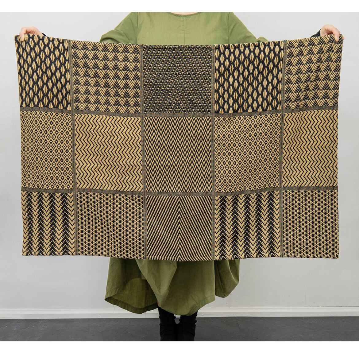 アフリカ中部コンゴ共和国クバ王国の伝統的な織物である草ビロードの柄をモチーフにした柄をパッチワークの様に織ったブランケットです。