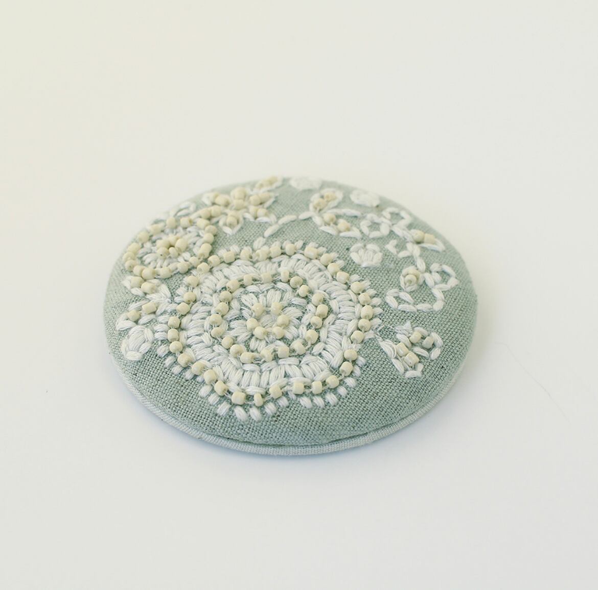 刺繍ラウンドミラー テンダーフラワー ミントグリーン