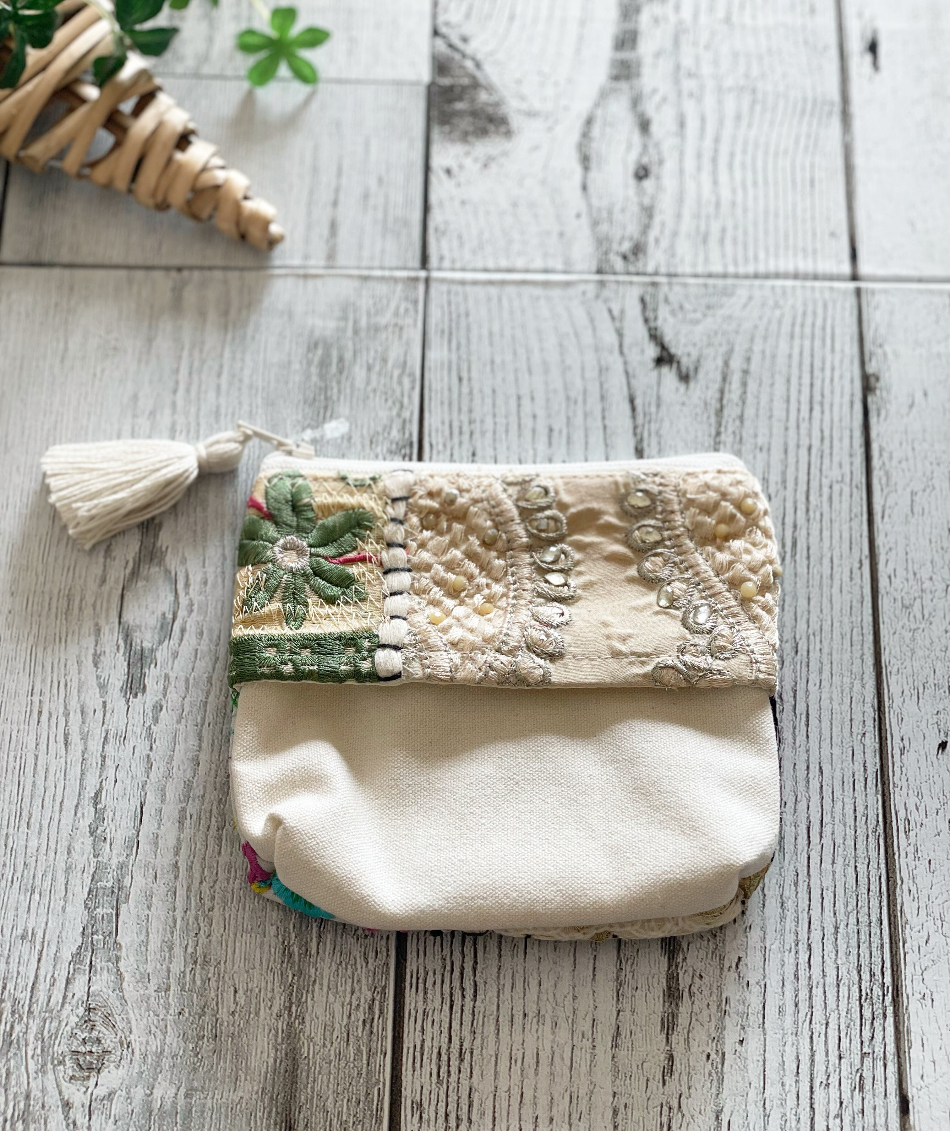 カンバディアパッチ ティッシュケース付ポーチ ベージュ