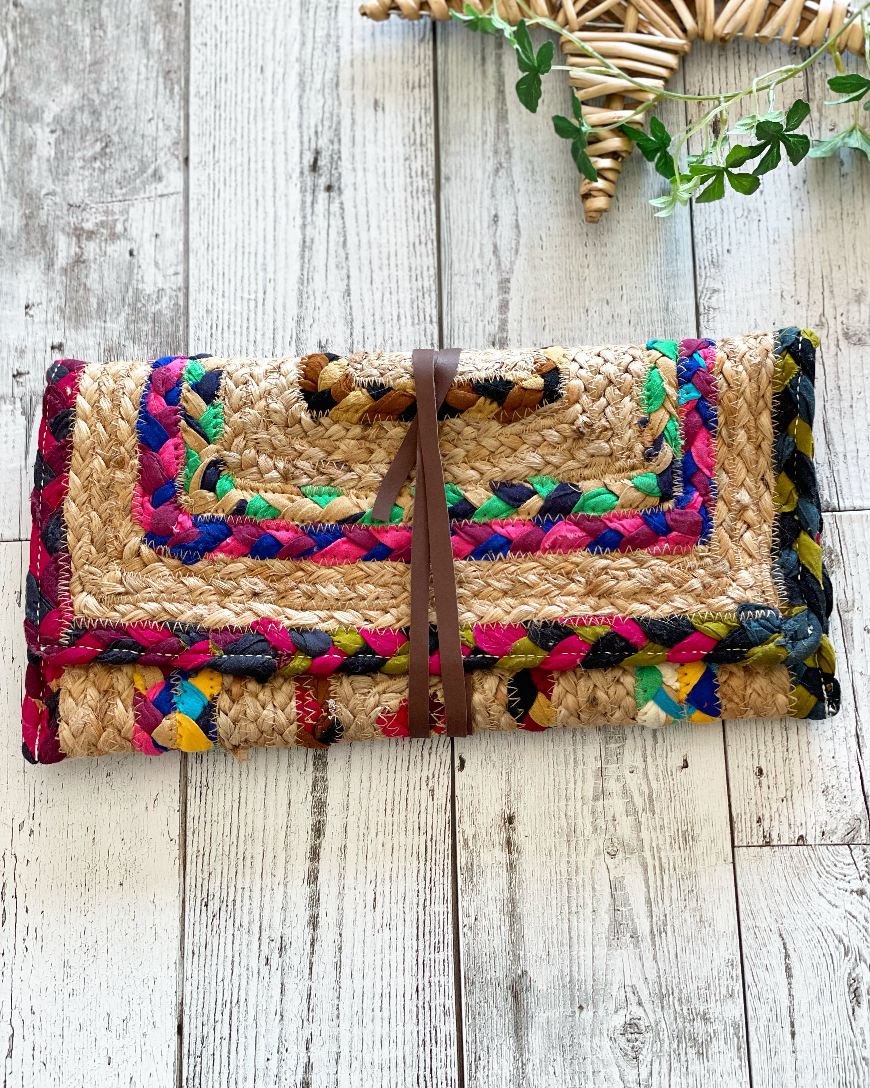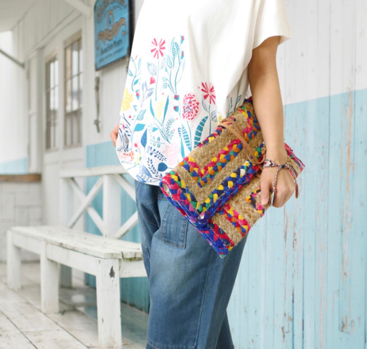 ジュート生地と古布を組み合わせた個性派クラッチバッグです。