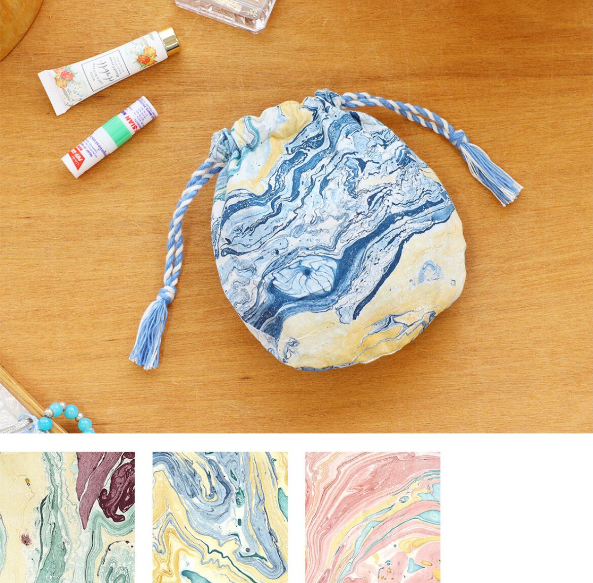 コロンとしたサイズとマーブル模様が可愛い巾着。