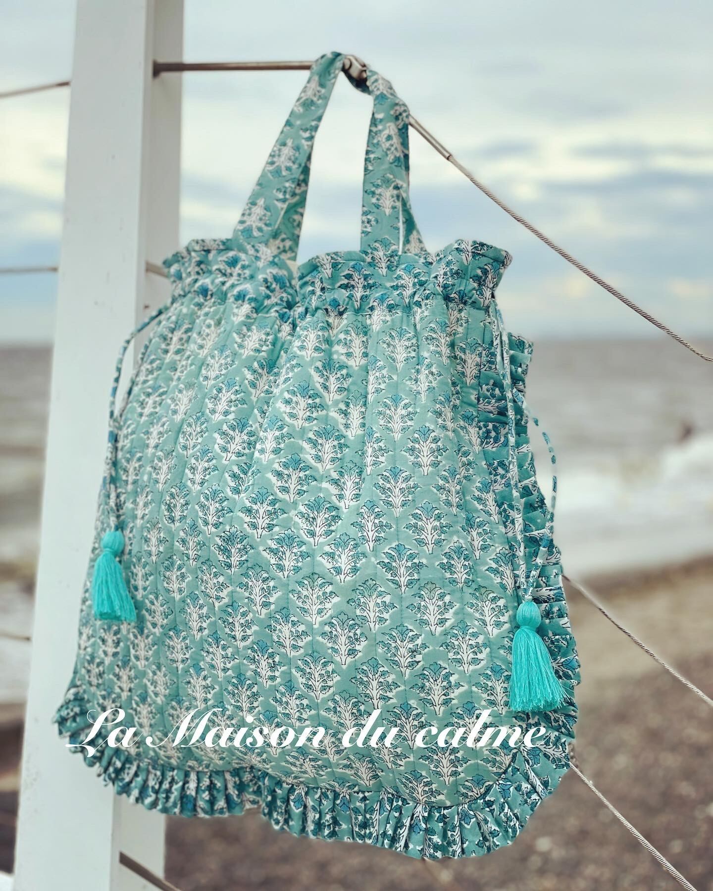 【Shop オリジナル】ブロックプリント キルティング フリル手提げバッグ