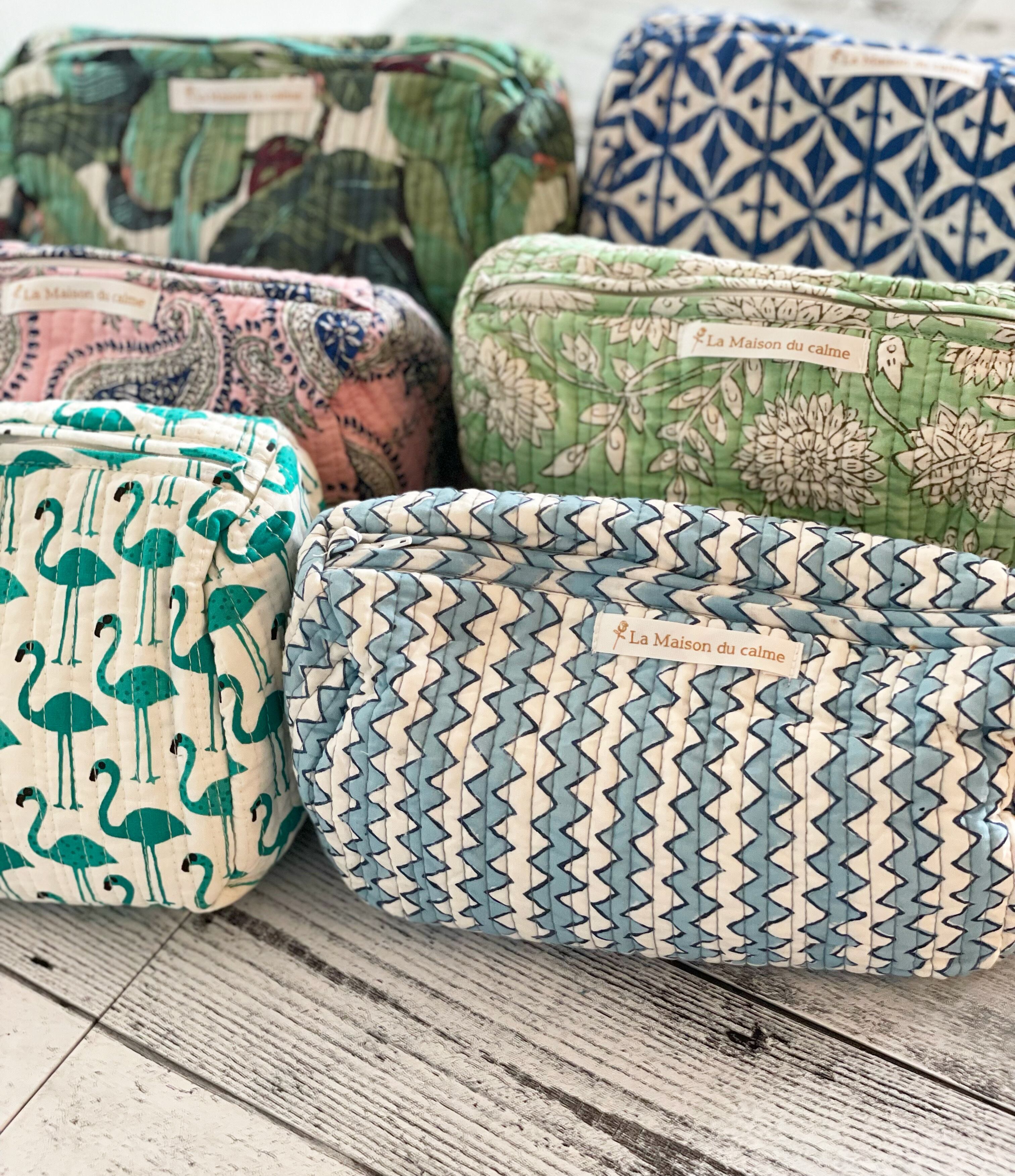 ブロックプリントの大・中・小のポーチ3点セットです。