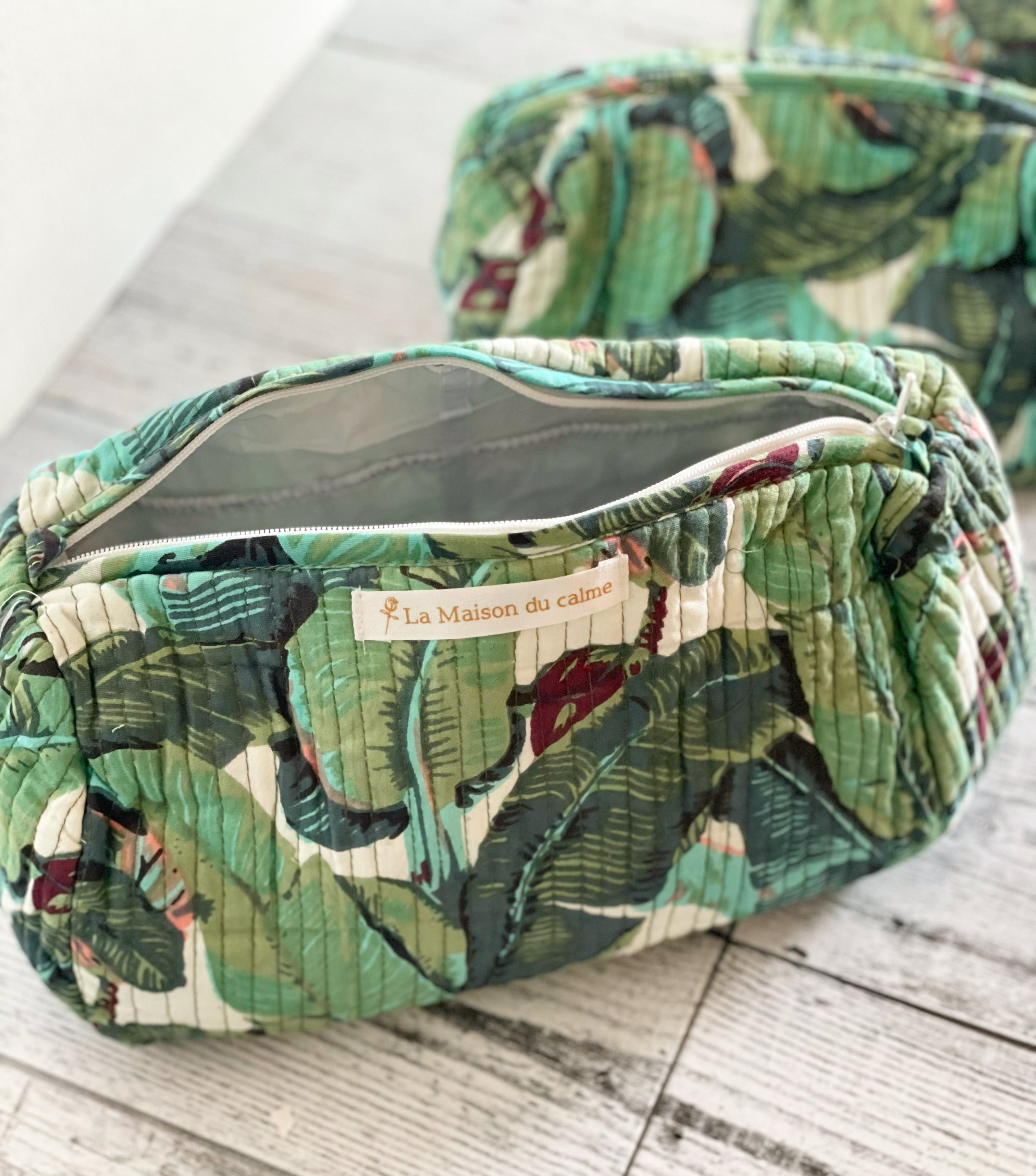 【Shop オリジナル】ブロックプリント ポーチ3点セット 緑葉っぱ
