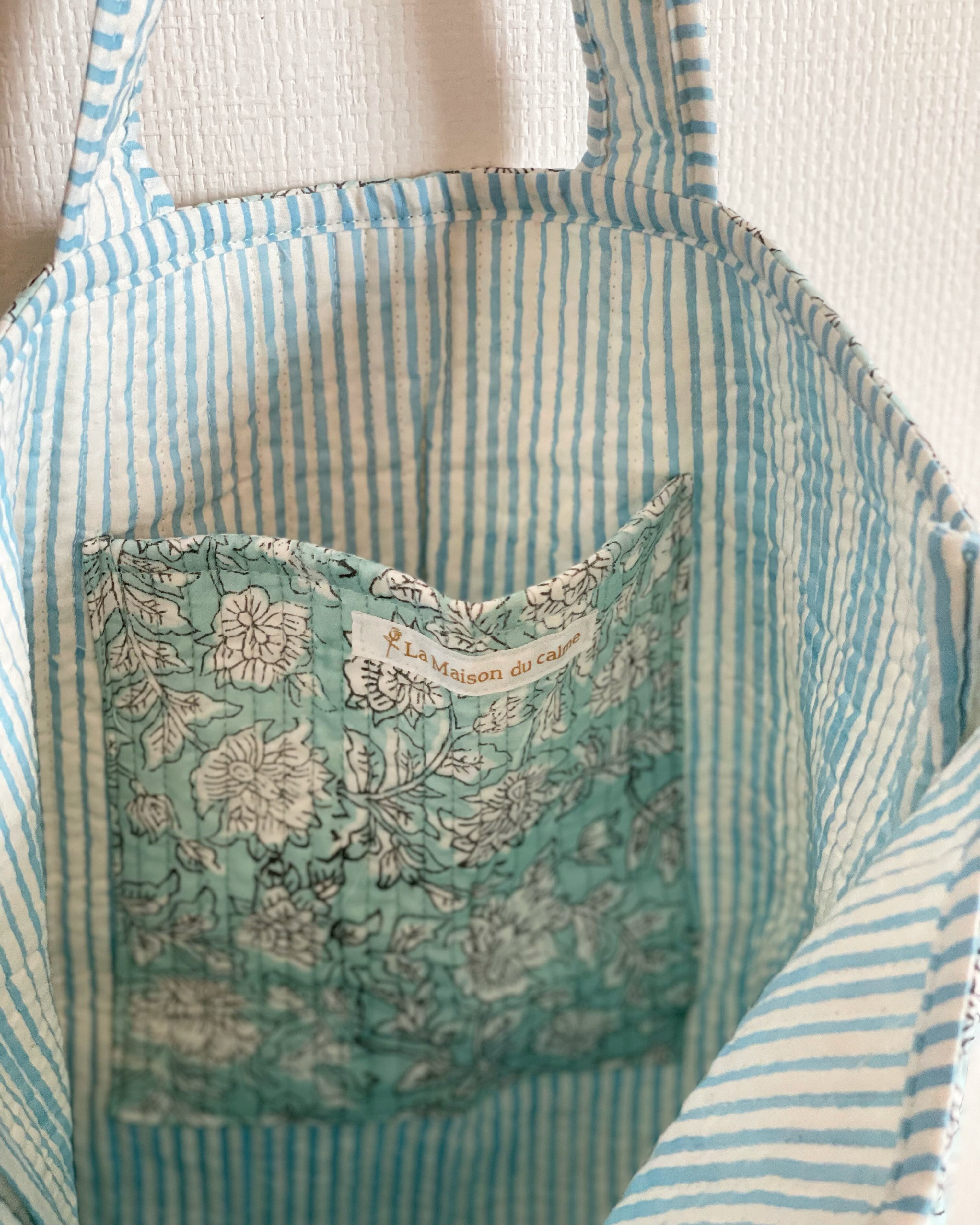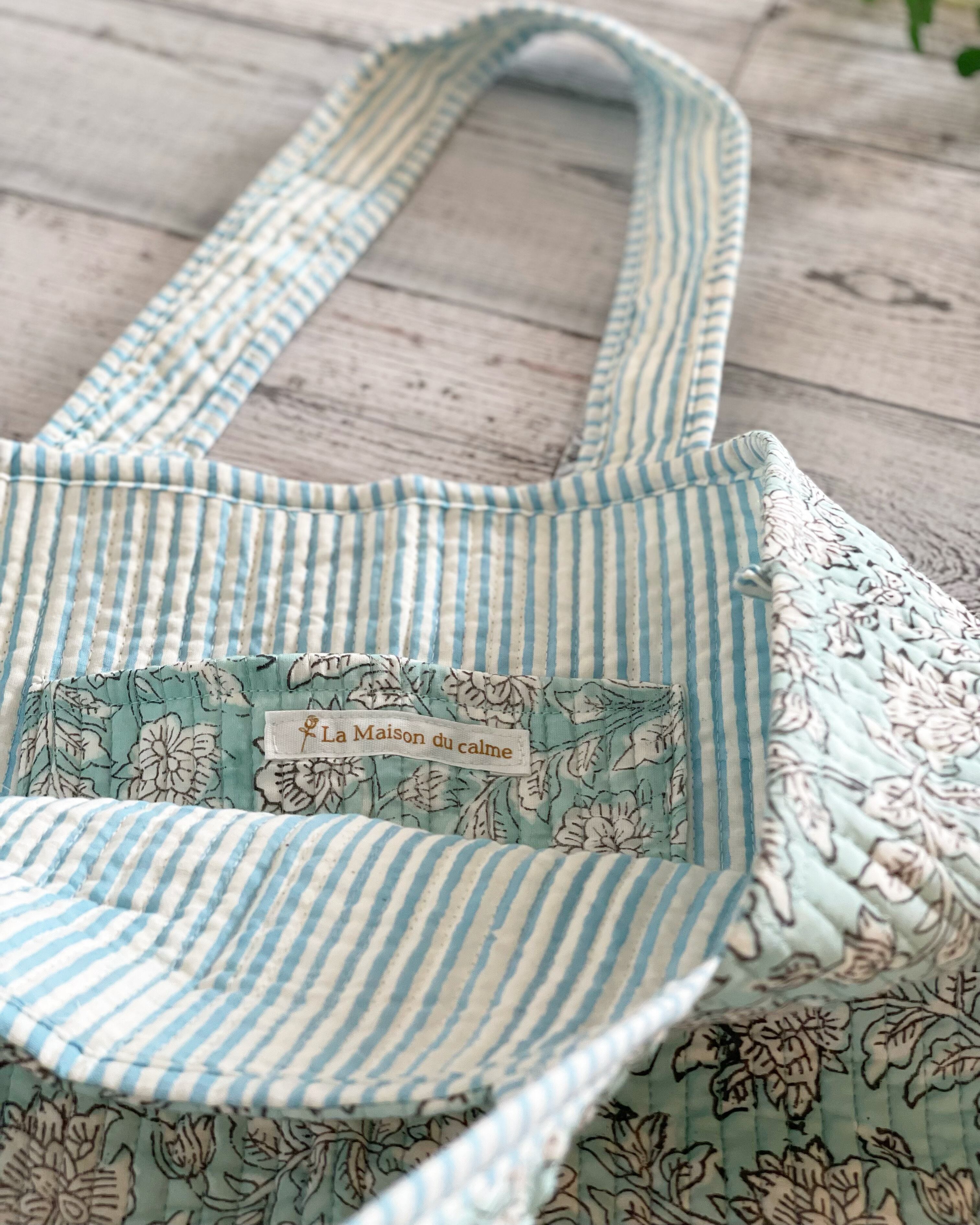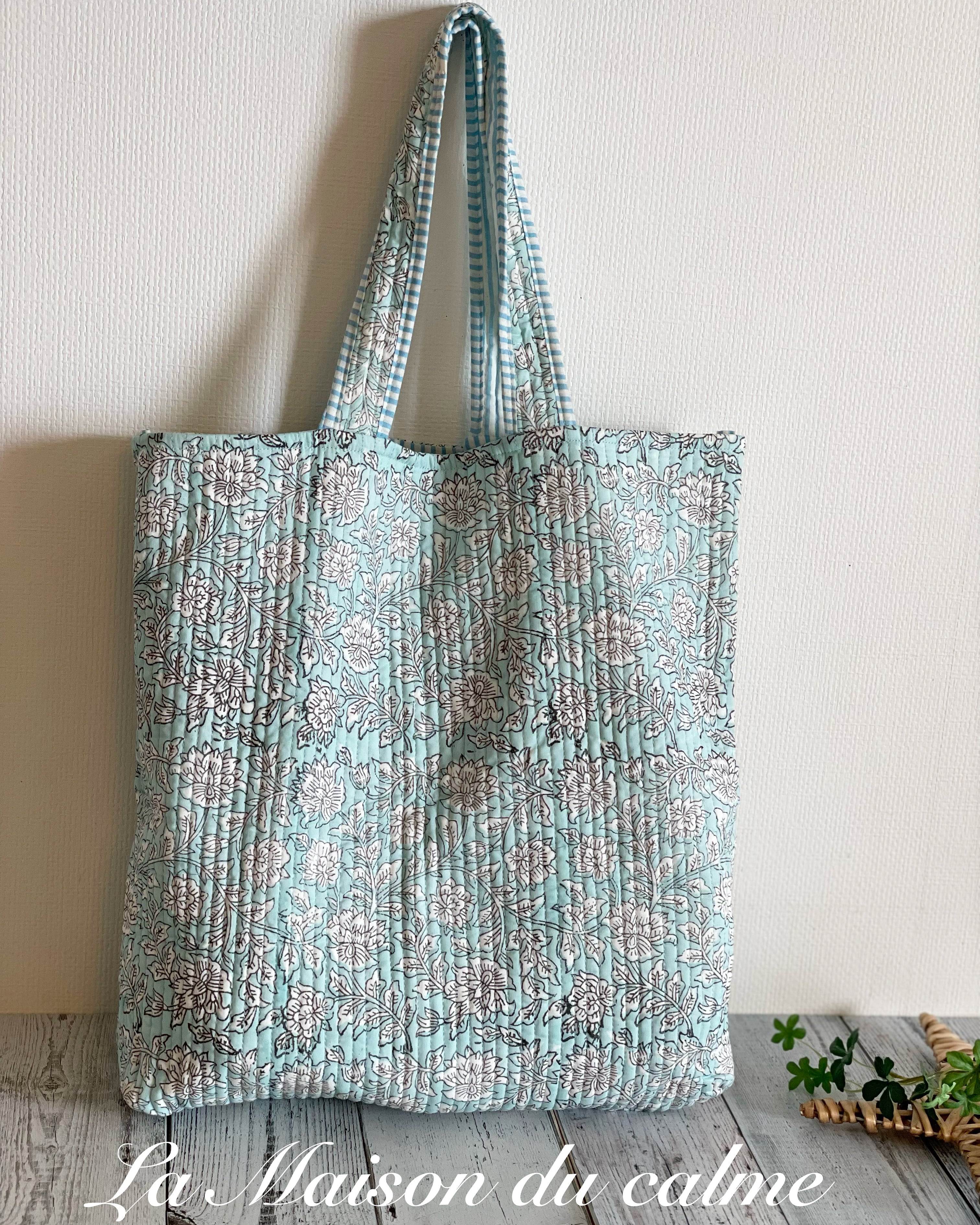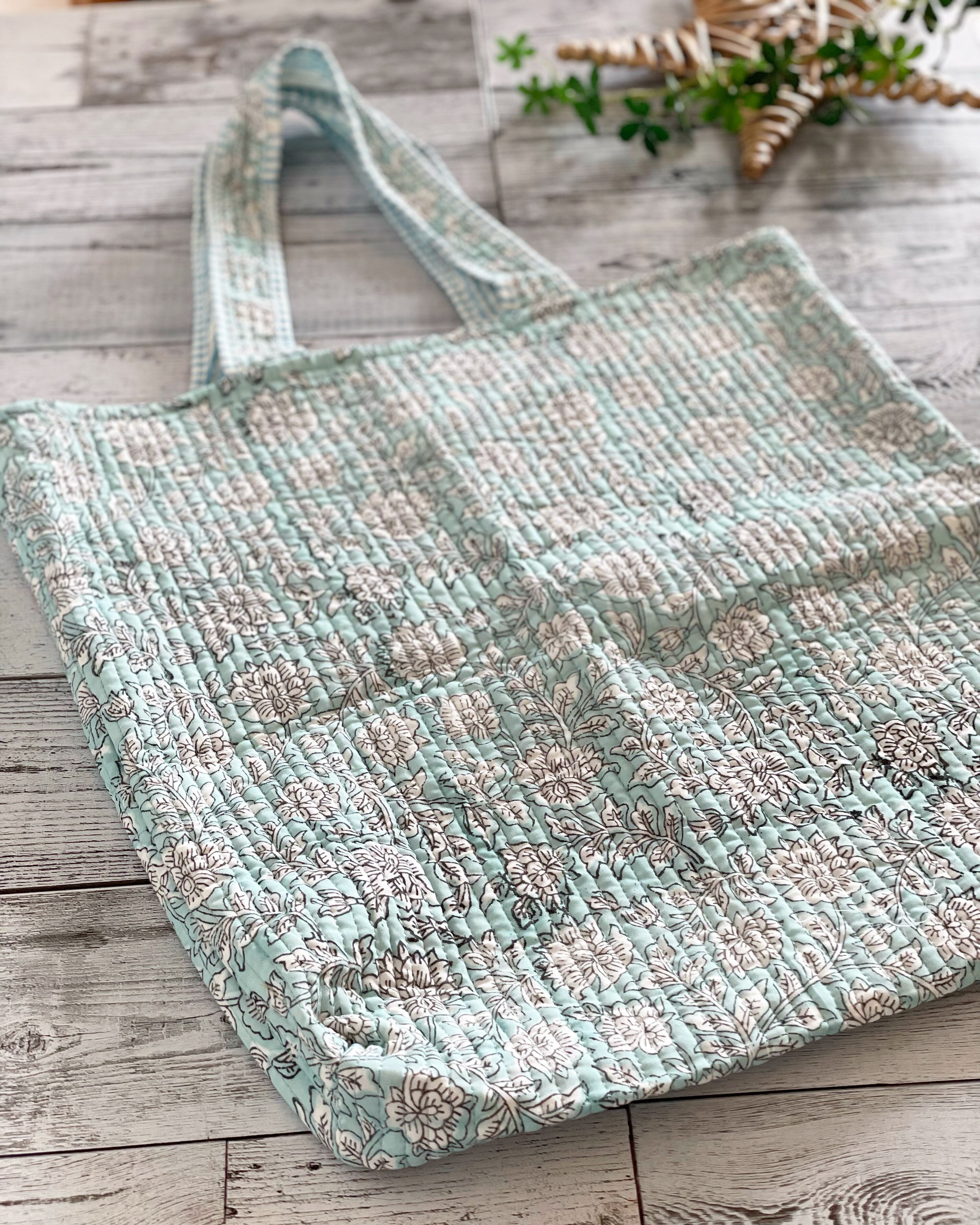 【Shop オリジナル】ブロックプリント キルトトートバッグ ライトグリーン