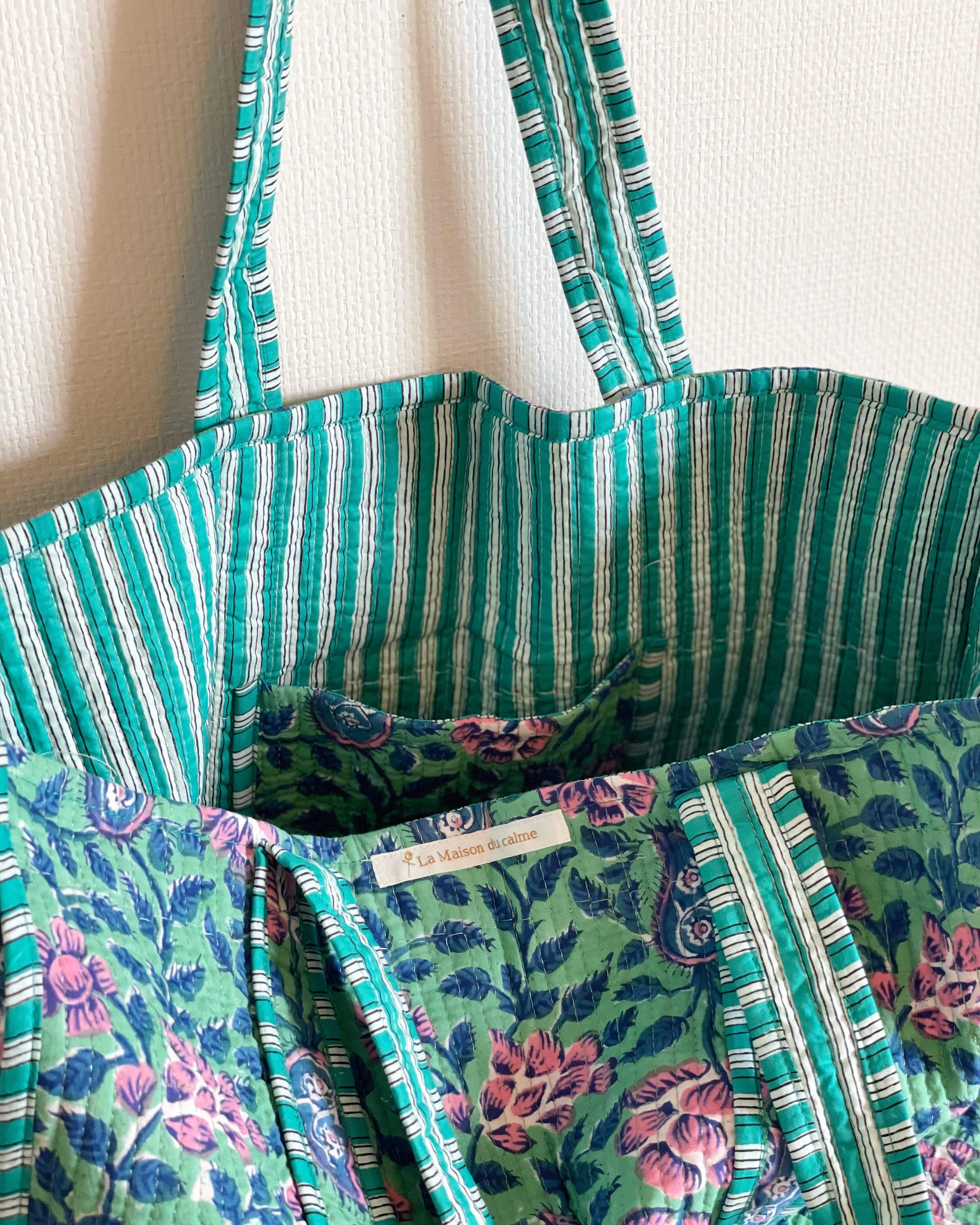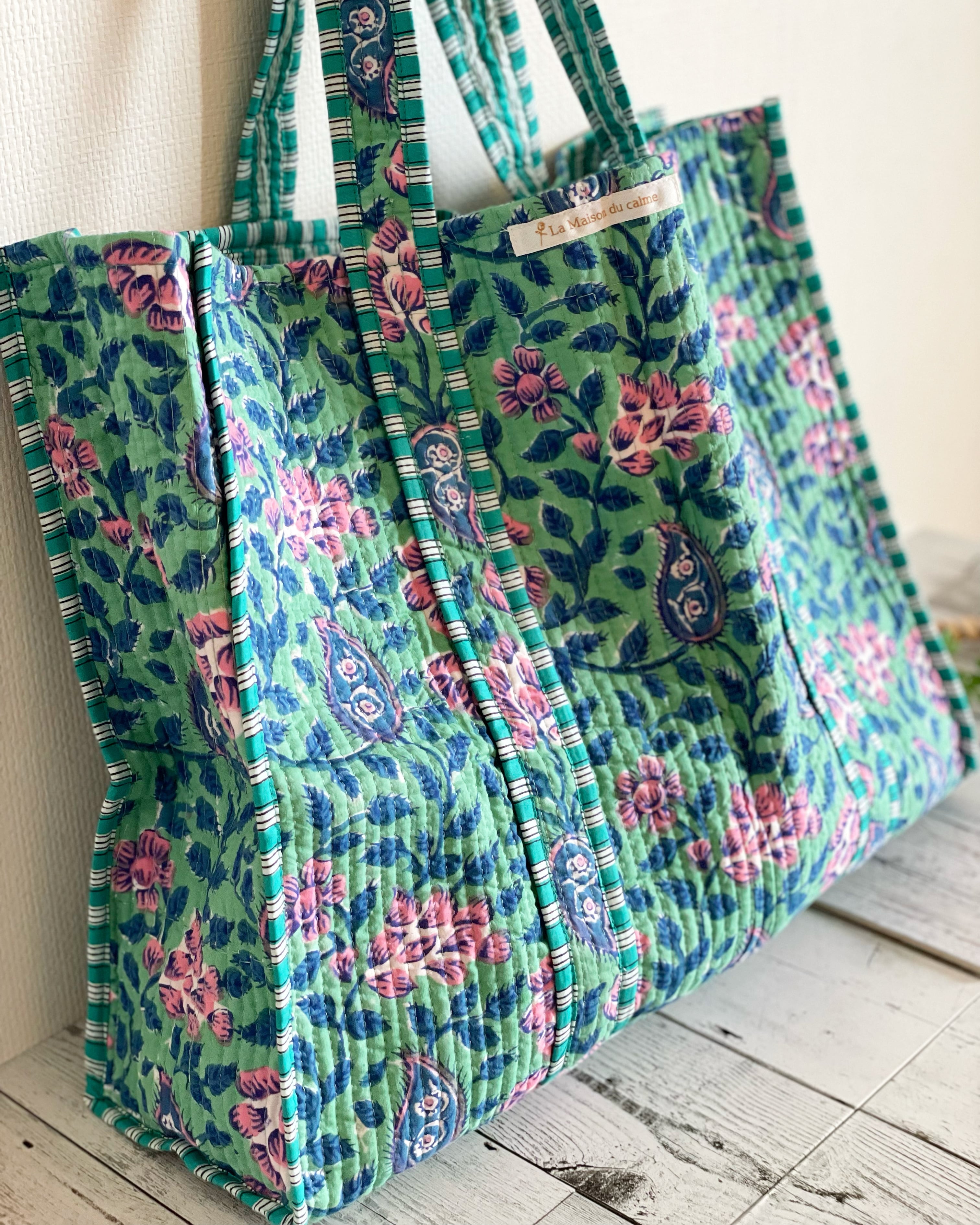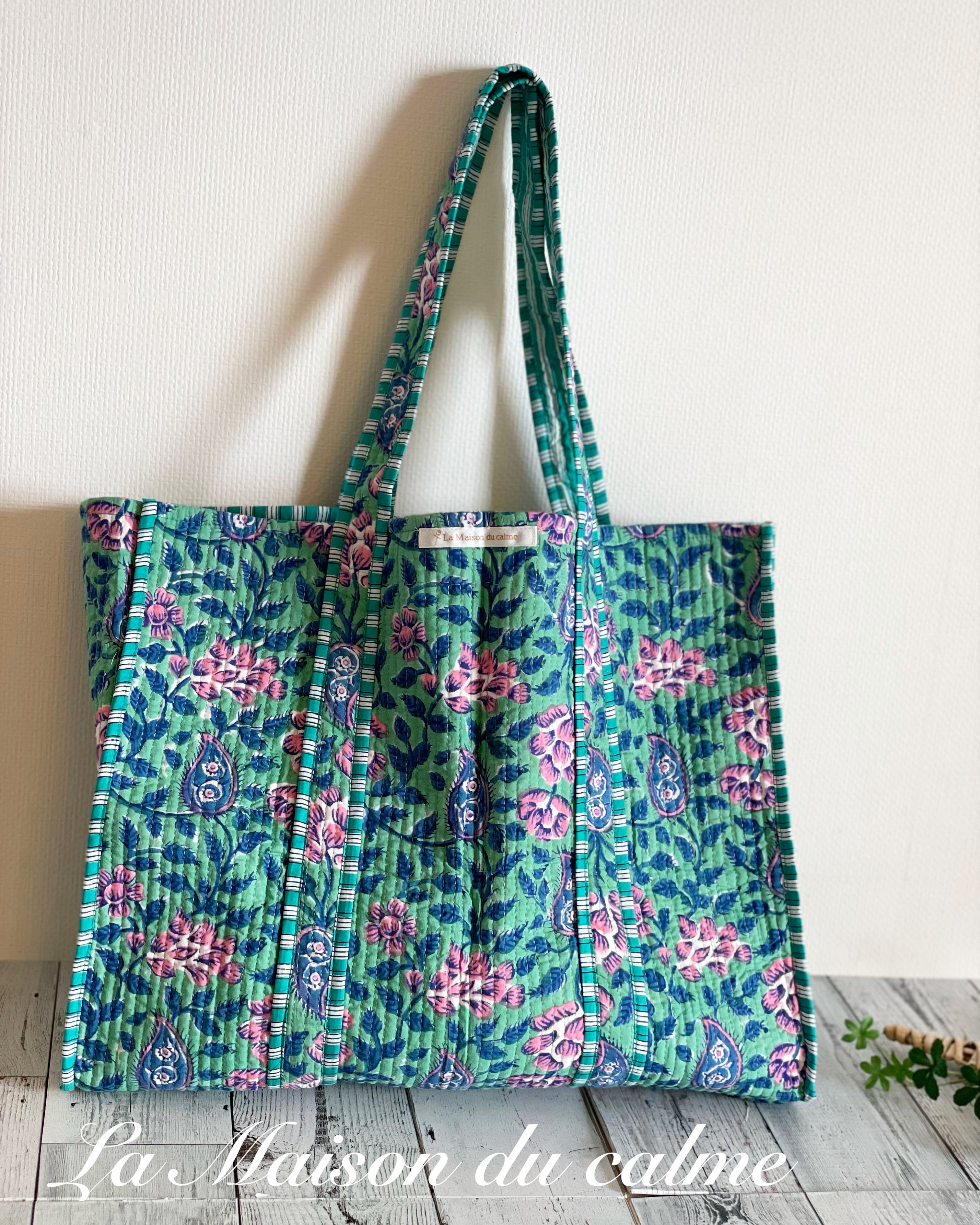 【A.S.様専用】ブロックプリント キルトトートバッグ大 ペイズリー緑
