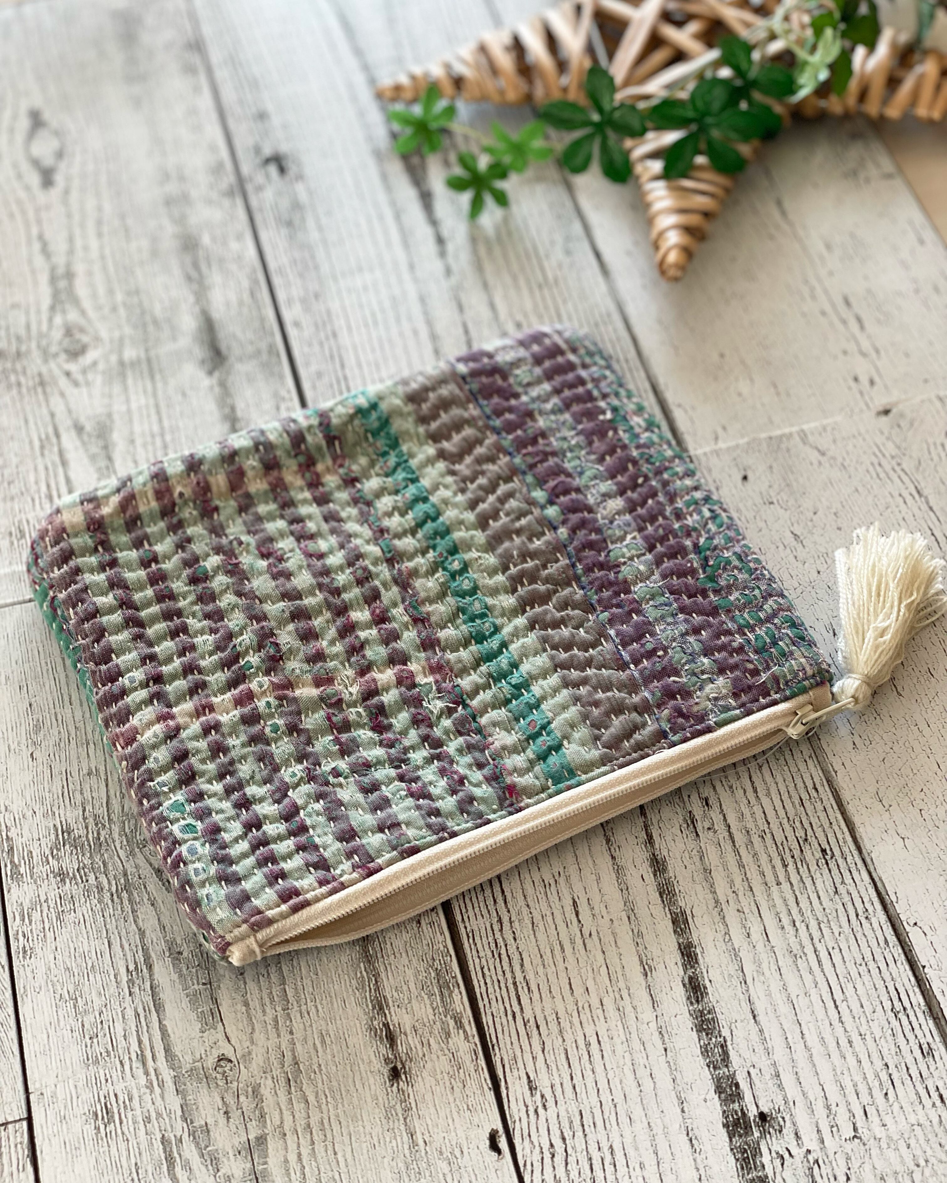 オンリーワンデザインのカンタ刺繍を施したフラットな形状のポーチです。