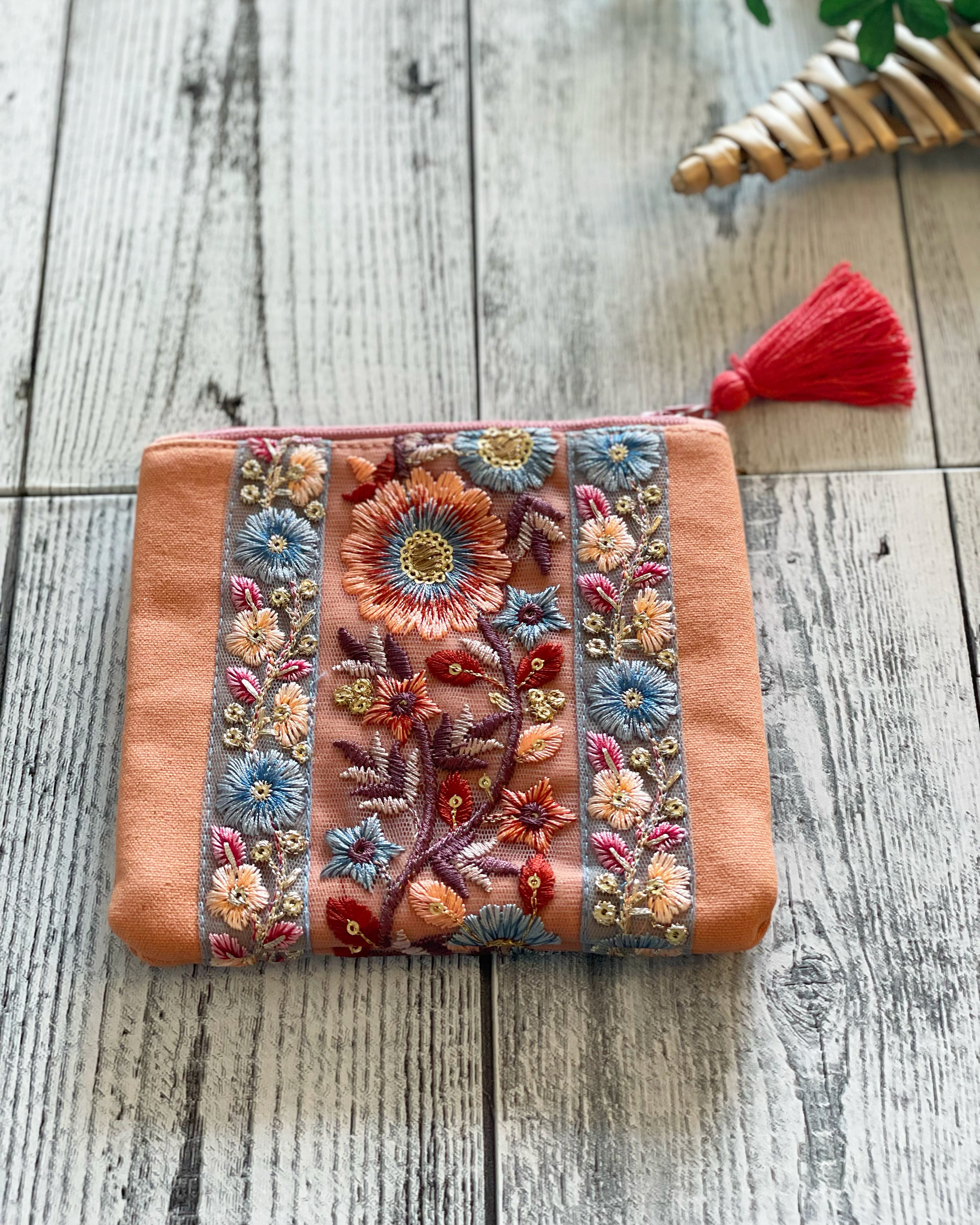 華やかな刺繍リボンを施した持つだけで気分が上がるポーチ♪