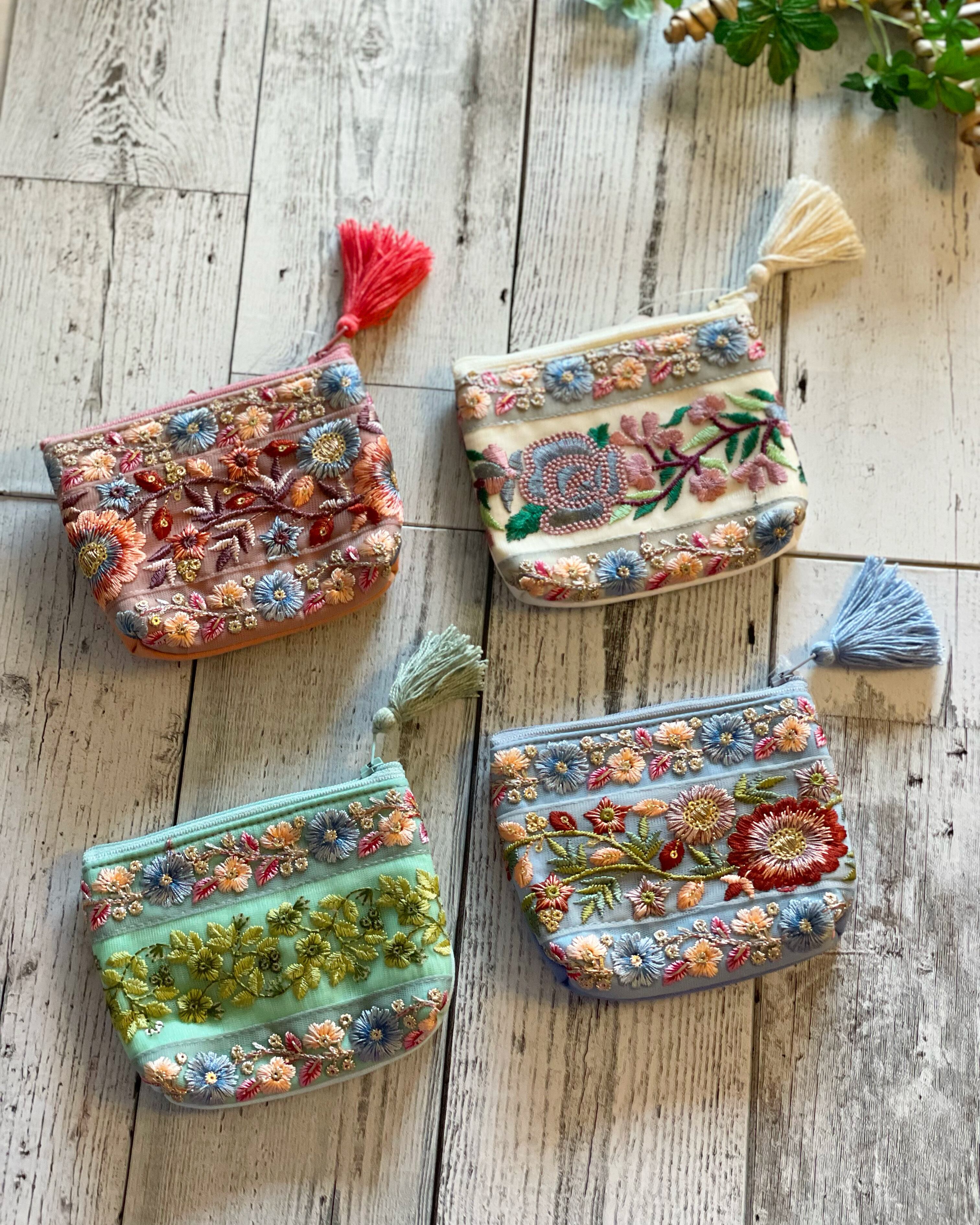 華やかな刺繍リボンを施した持つだけで気分が上がるポーチ♪