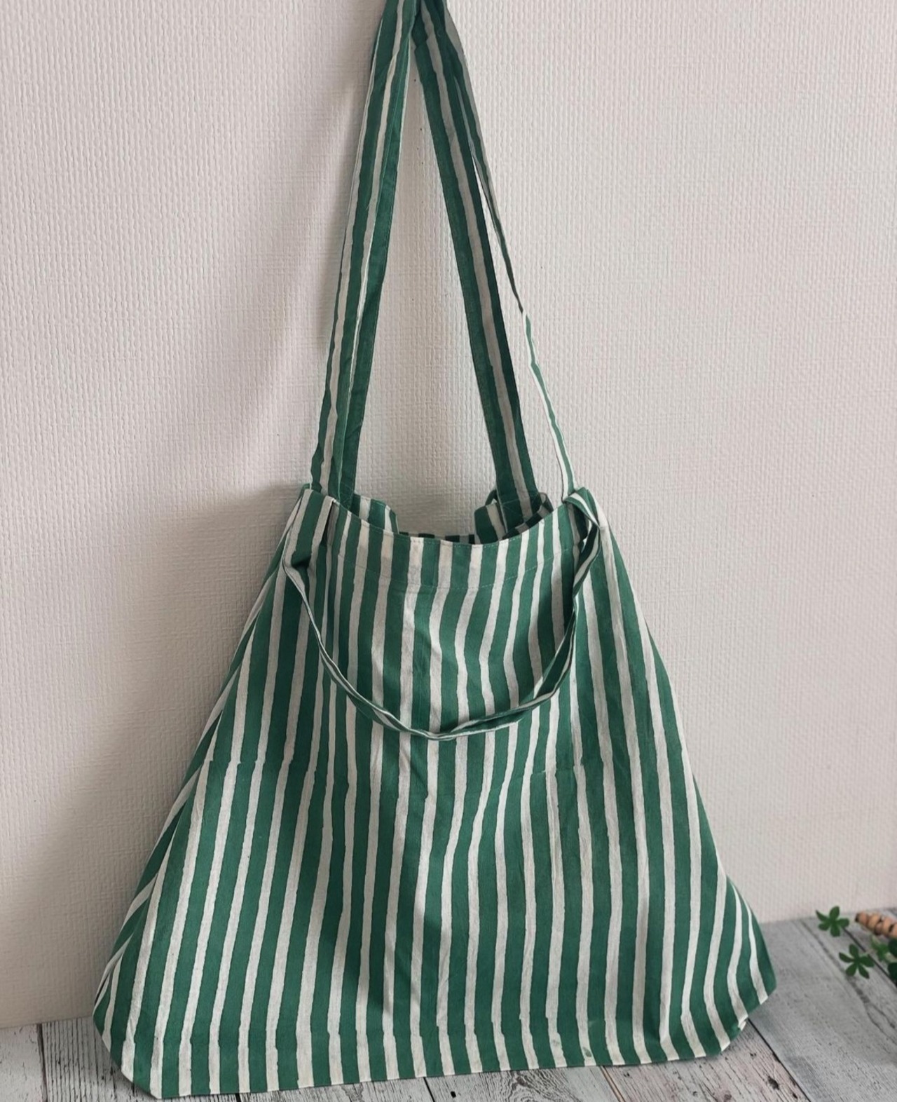2ハンドルトートバッグ ストライプ グリーン