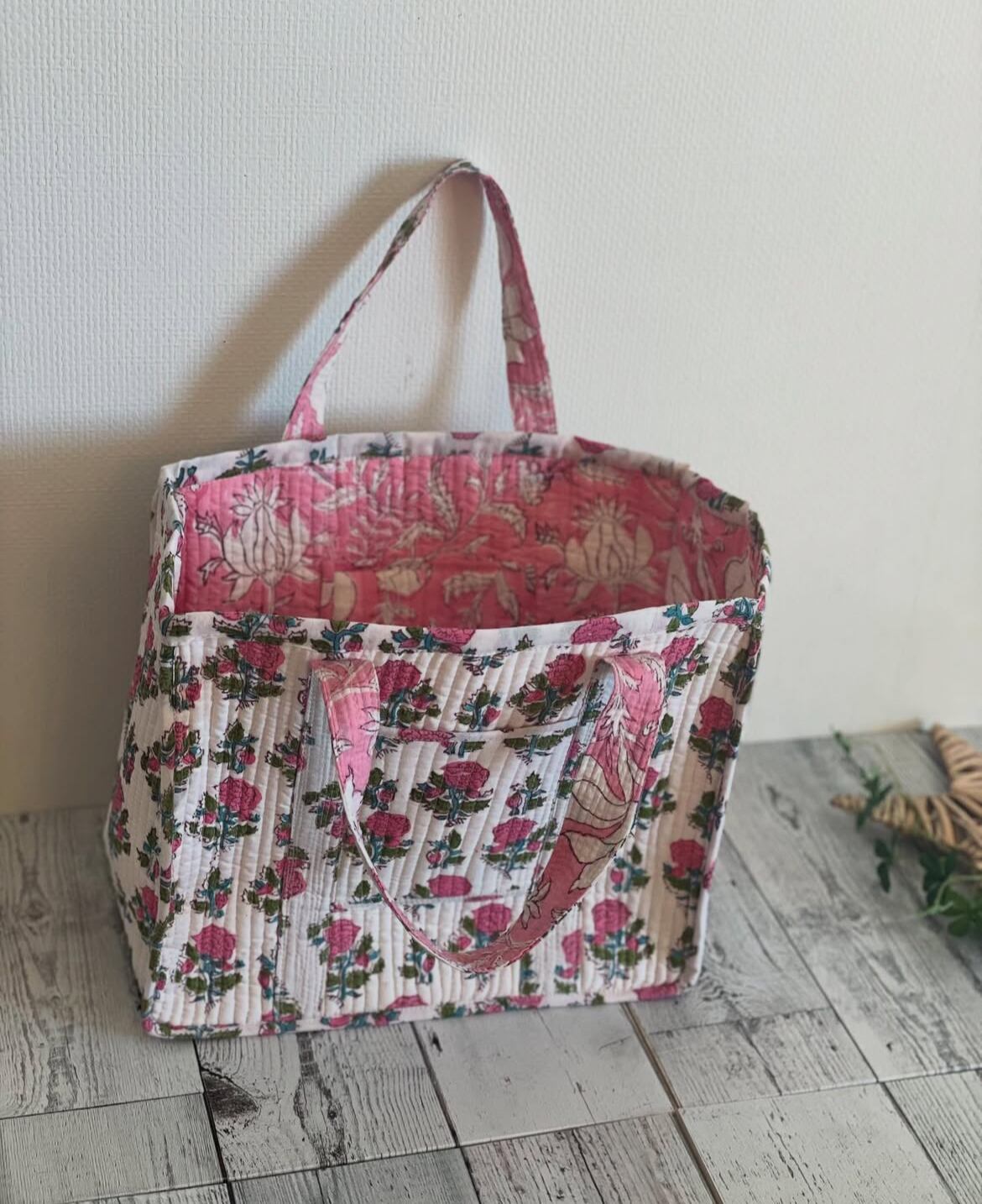【Shop オリジナル】ブロックプリント キルティングミニトートバッグ おまけ付き
